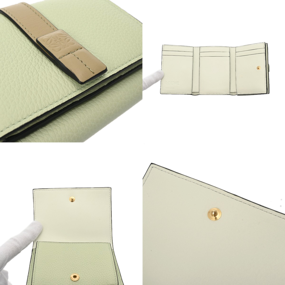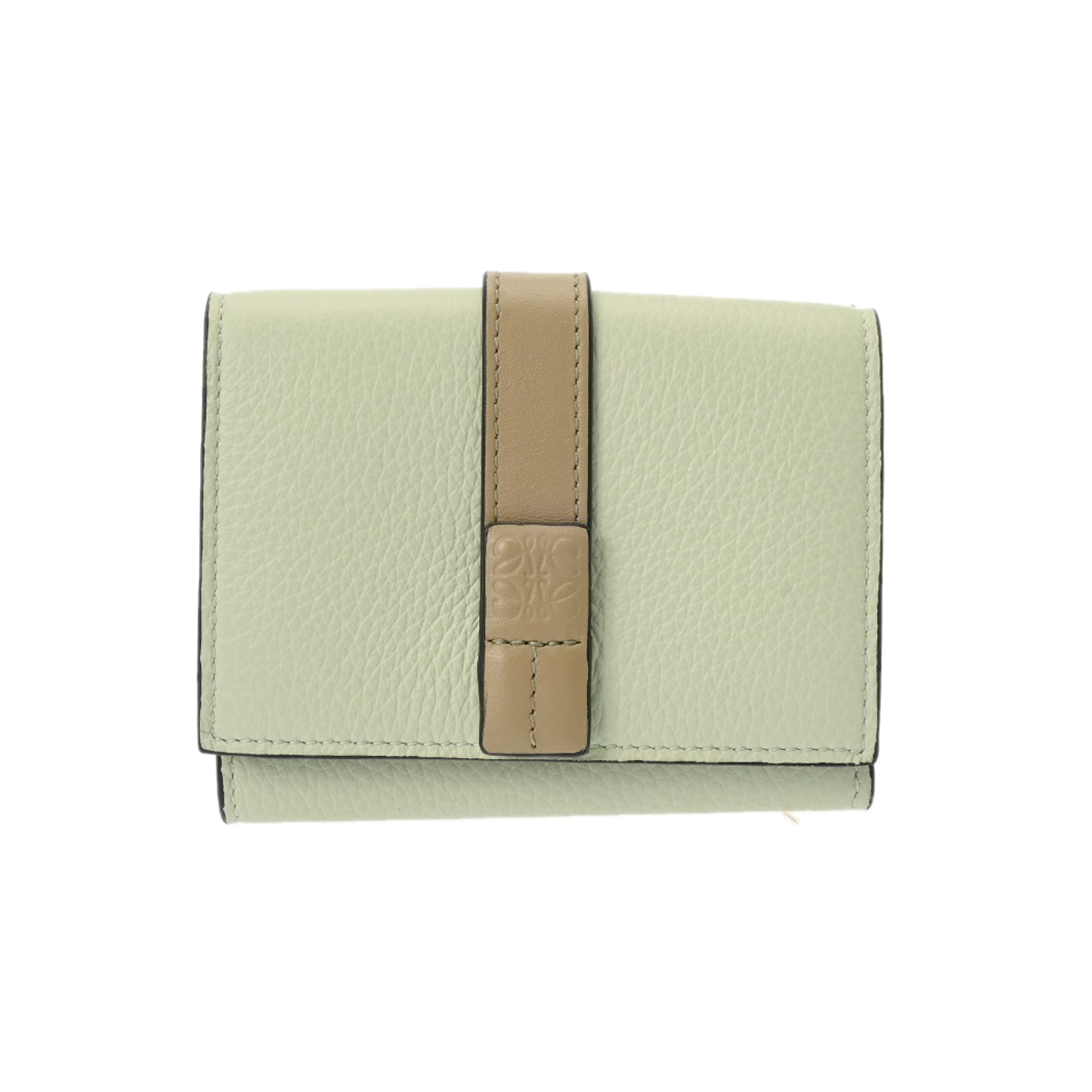 ロエベ トライフォールドウォレット グリーン C660TR2X03 ソフトグレインカーフ レディース 財布 【中古】【purse】