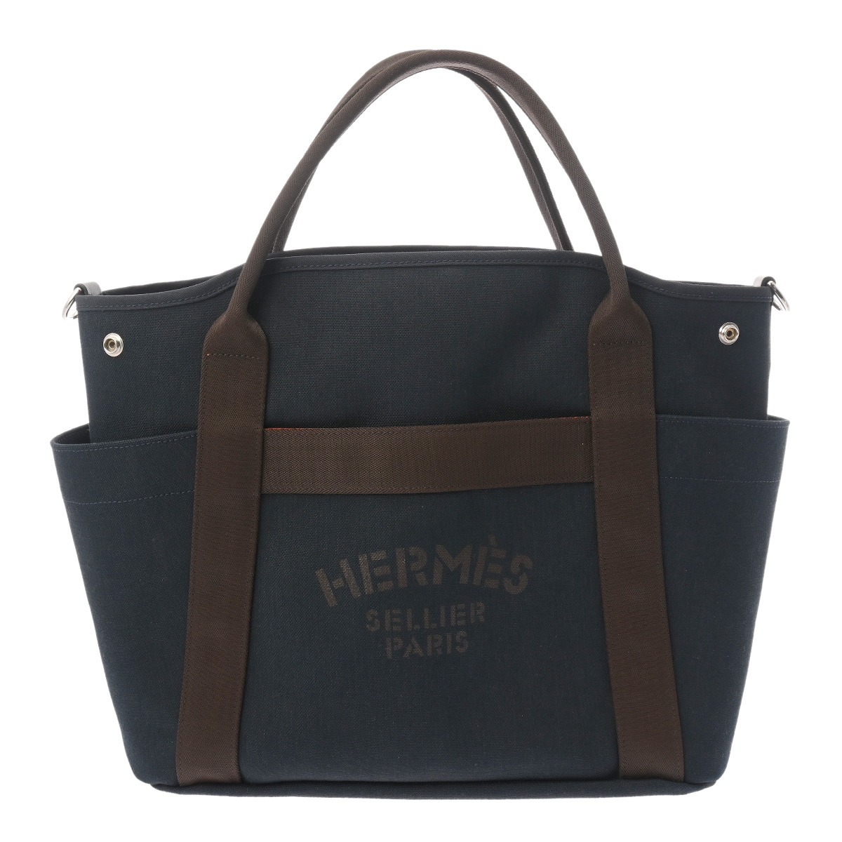 エルメス サック ド パンサージュ ネイビー/フー トワルシェブロン/ブライドルレザー ユニセックス バッグ 【中古】【bag】