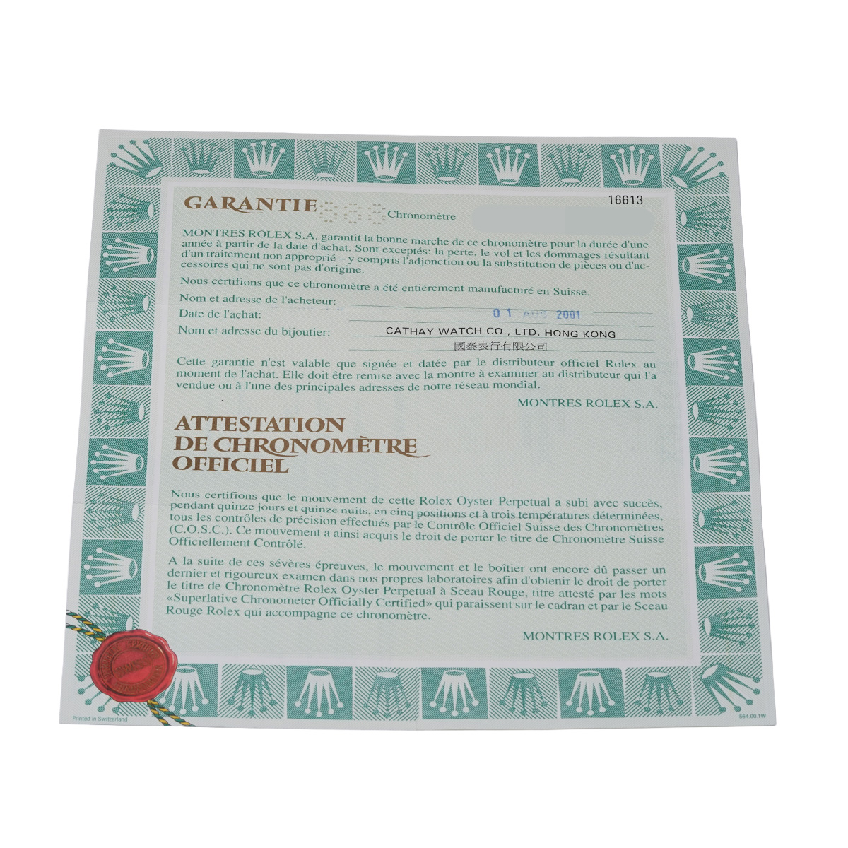- メーカー保証書( 2001年8月海外購入)