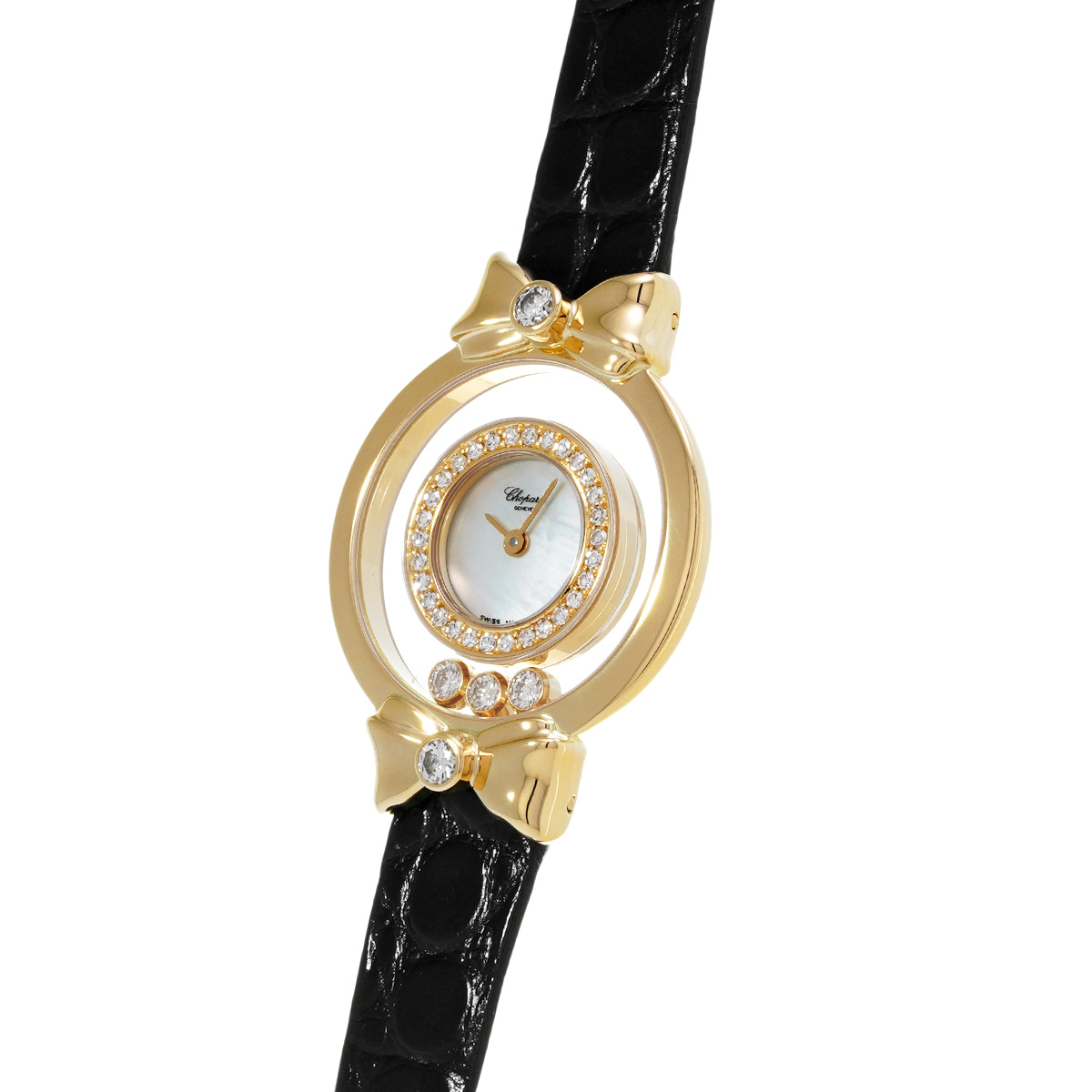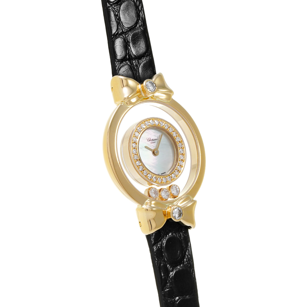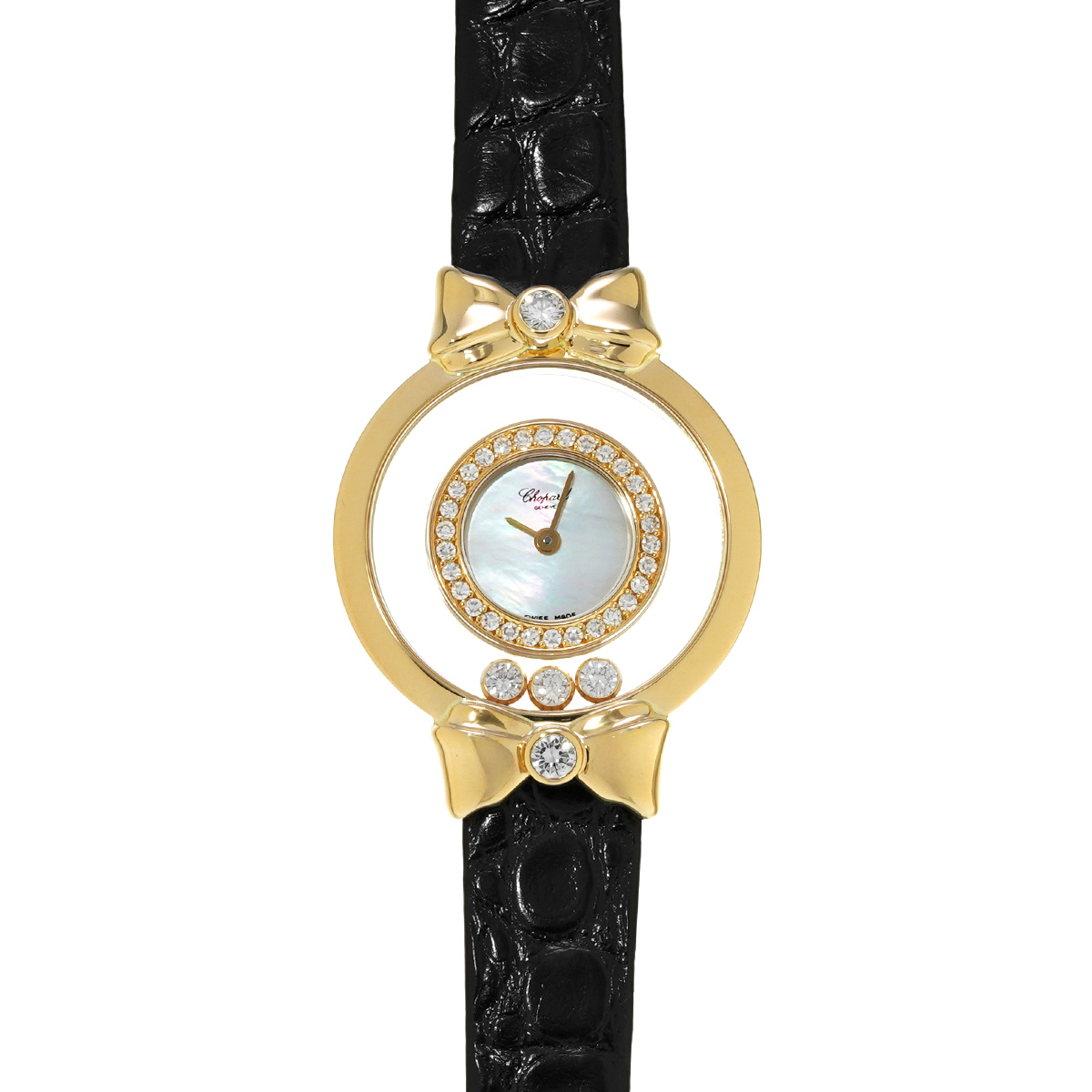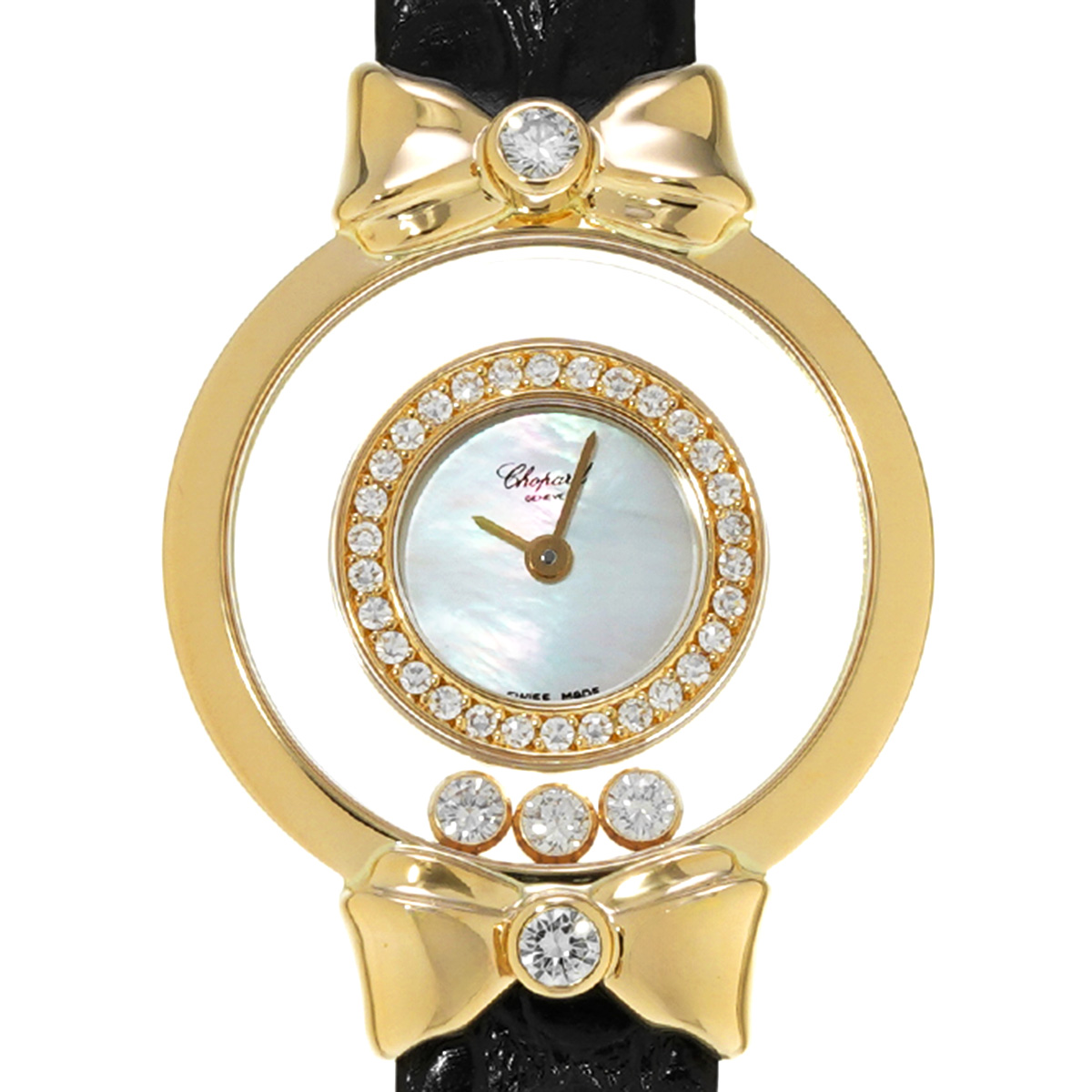 ショパール ハッピーダイヤモンド リボン 4097/1 ホワイトシェル レディース 時計 【中古】【wristwatch】