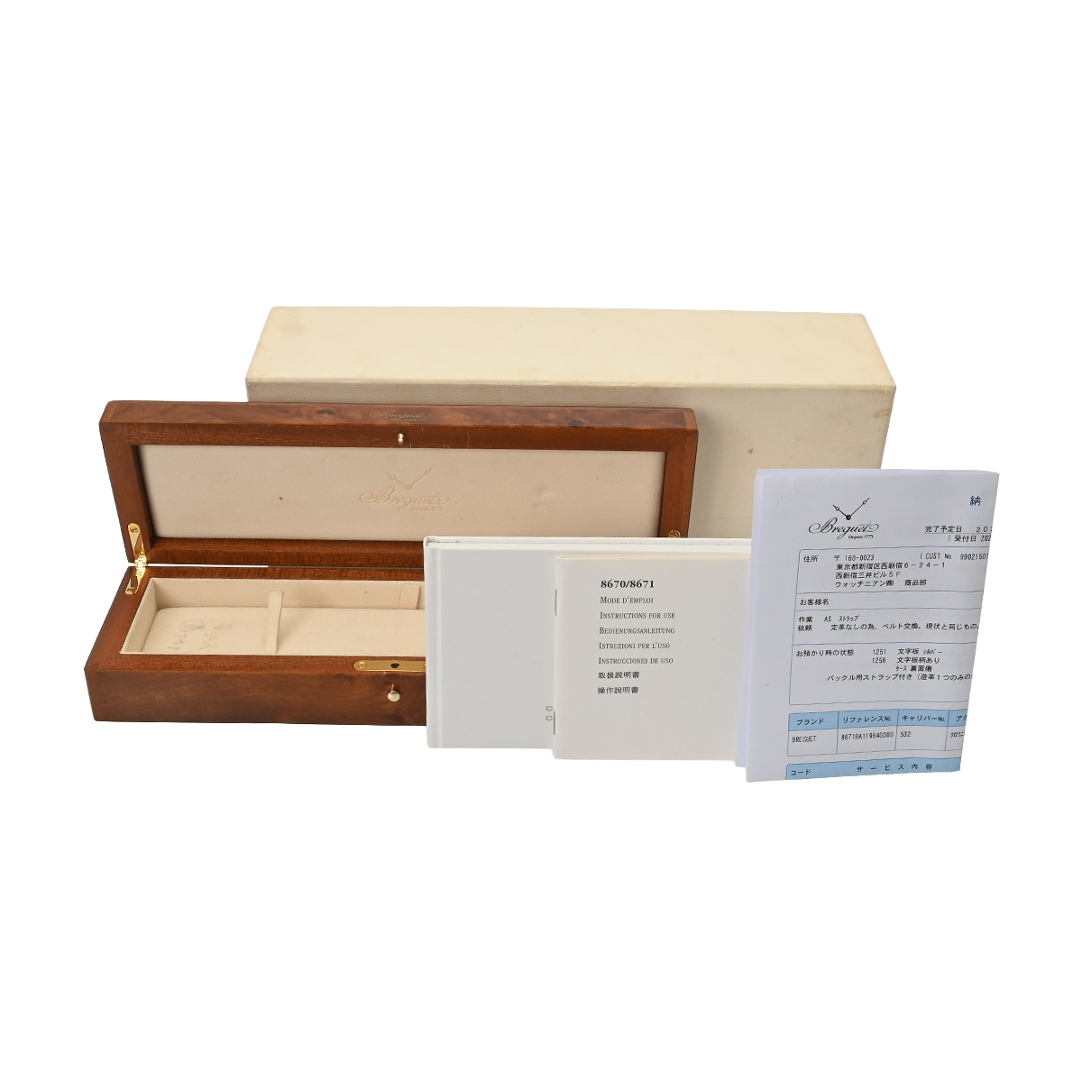 - メーカー保証書( 2008年6月国内購入) / メーカー箱(ダメージ)/冊子 / 納品書(2026年3月ストラップ交換他)