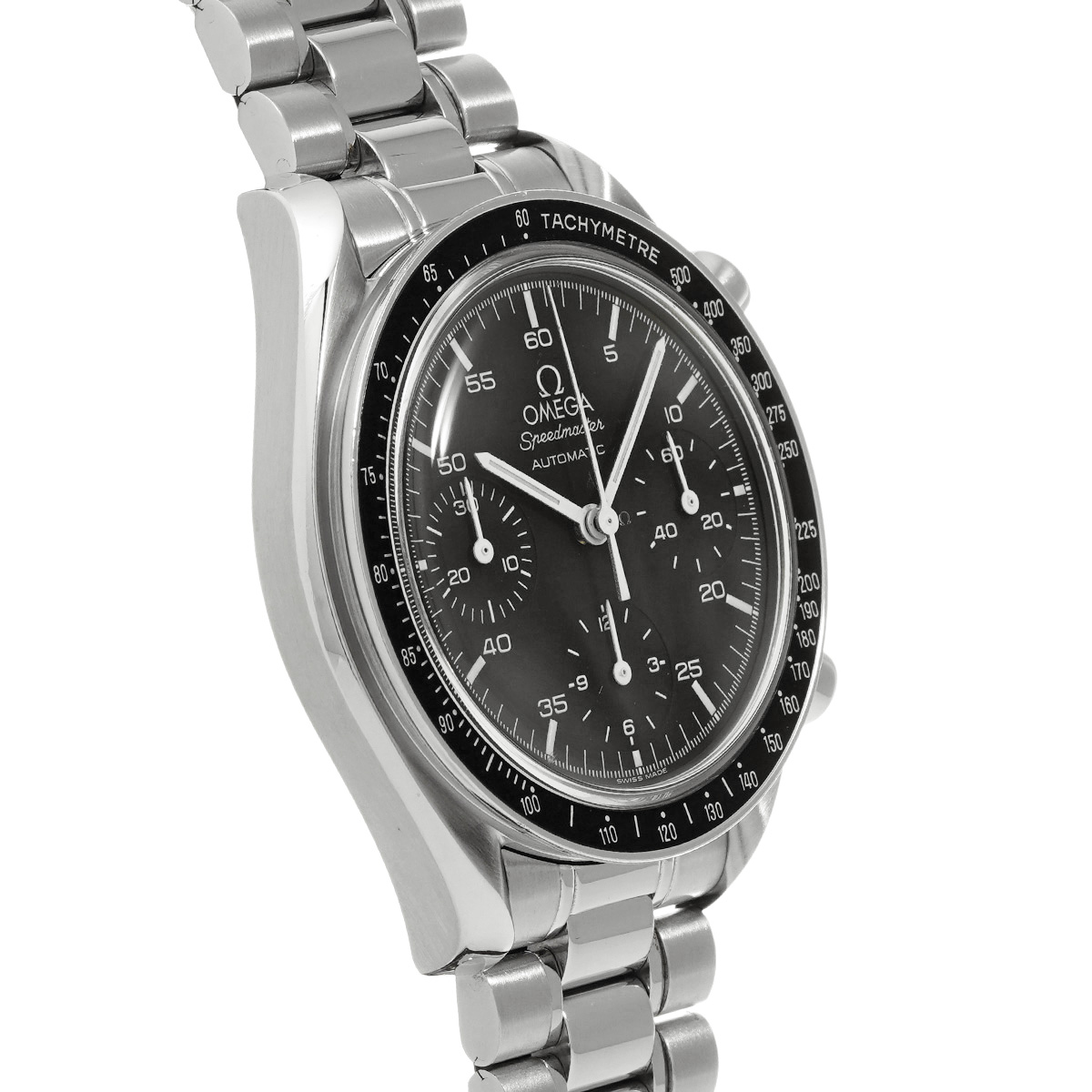 コメントこのスピードマスター リデュースドとも呼ばれるモデルは、オメガの代表的な時計であるスピードマスター プロフェッショナルのツールとして研ぎ澄まされた精悍さはそのままに、ケース径を39ミリに縮小して腕上での収まりを改善すると共に、自動巻きムーブメントの採用によって利便性を向上させることで、より多くの人々の日常に寄り添える時計を目指したものです。