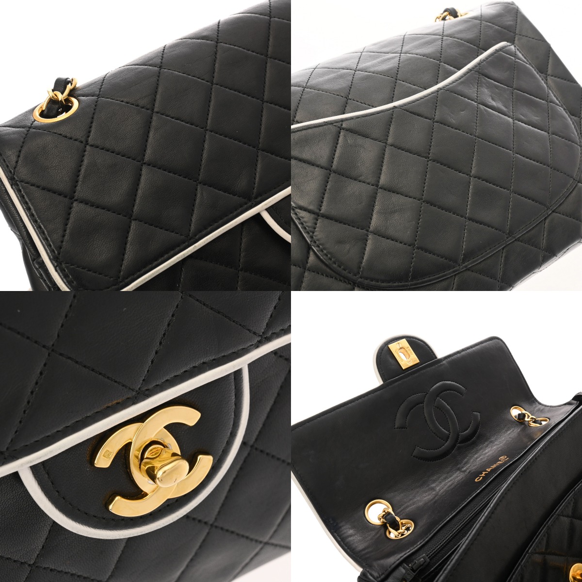 シャネル マトラッセ SフラップWチェーンショルダー ブラック ラムスキン レディース バッグ 【中古】【bag】