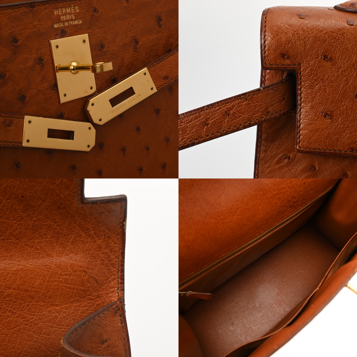 エルメス ケリー35 外縫い ゴールド オーストリッチ レディース バッグ 【中古】【bag】