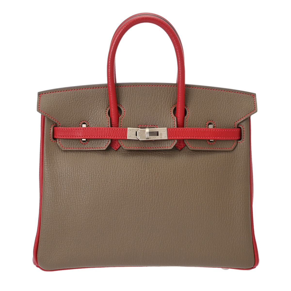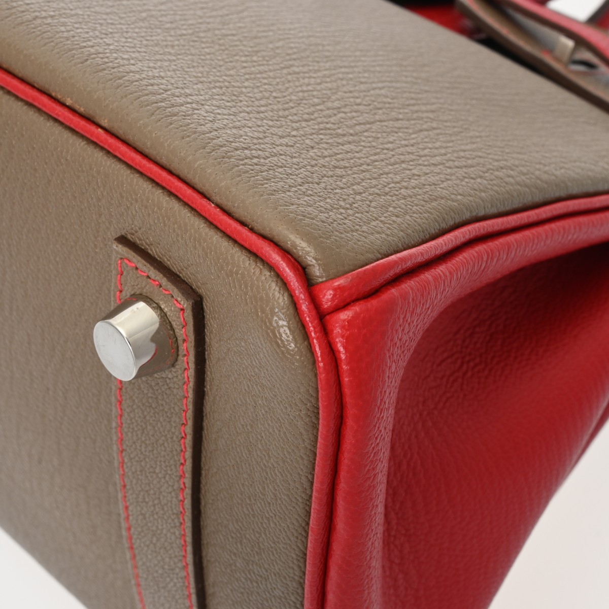 エルメス バーキン 25 SPオーダー エトゥープ/ルージュカザック シェーブル レディース バッグ 【中古】【bag】