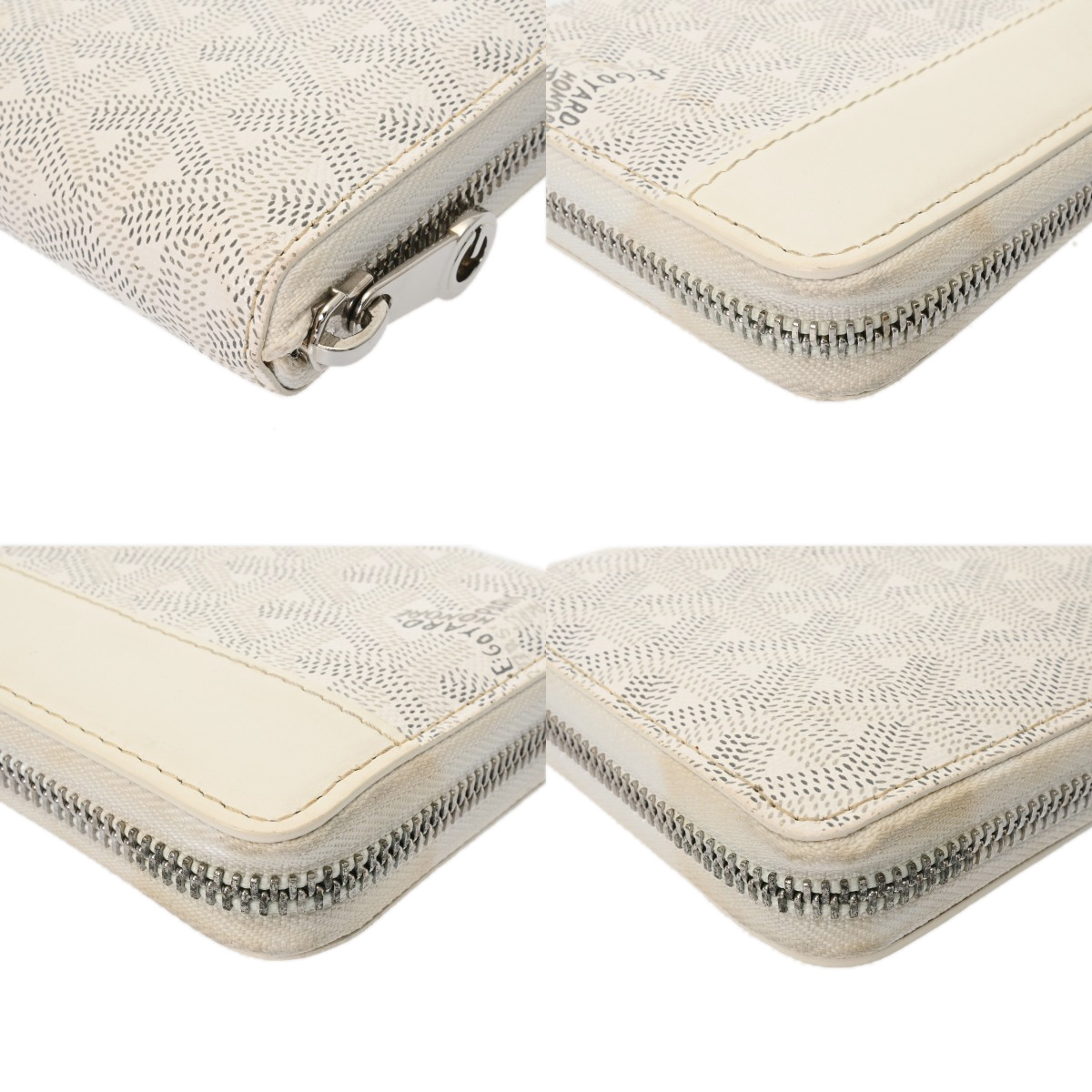 - 黒ずみ、シミなど目立つ汚れ、ファスナーテープに毛羽立ち、金具にスリキズなど使用感がございます。