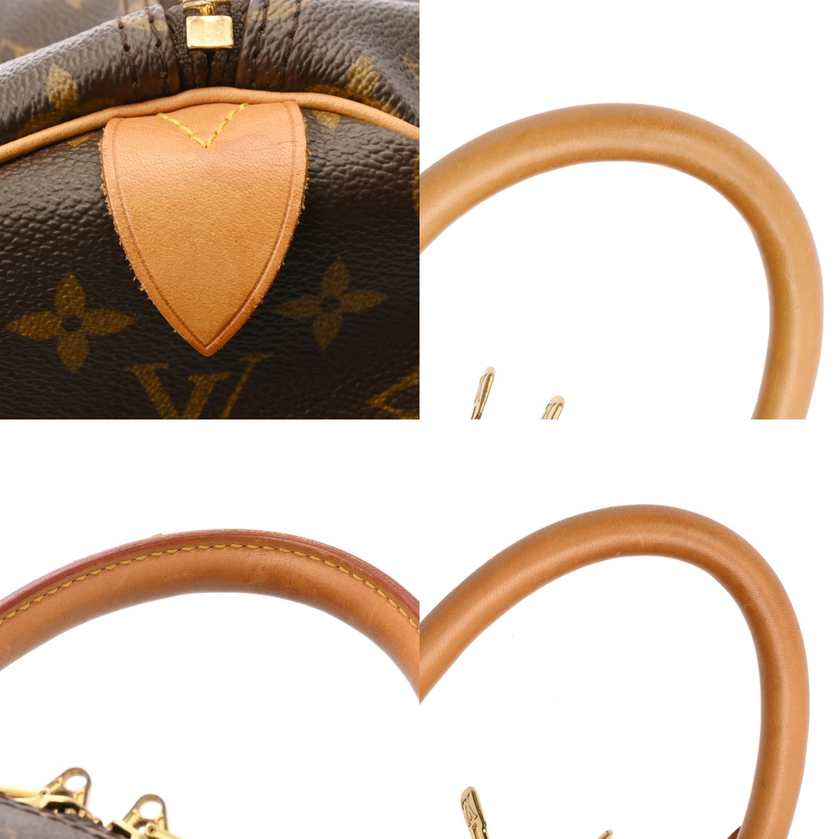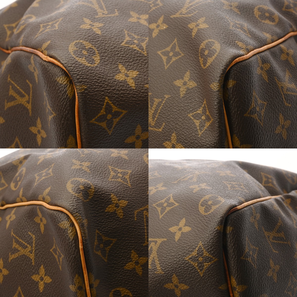 たたみくせ、テカリや薄汚れ、スレ、シワ、サイドのプルにクセ、ヌメ革部分にヤケやシミ、シワやヒビ割れなどの使用感、金具部分にくすみやメッキ剥がれなどがございます。
