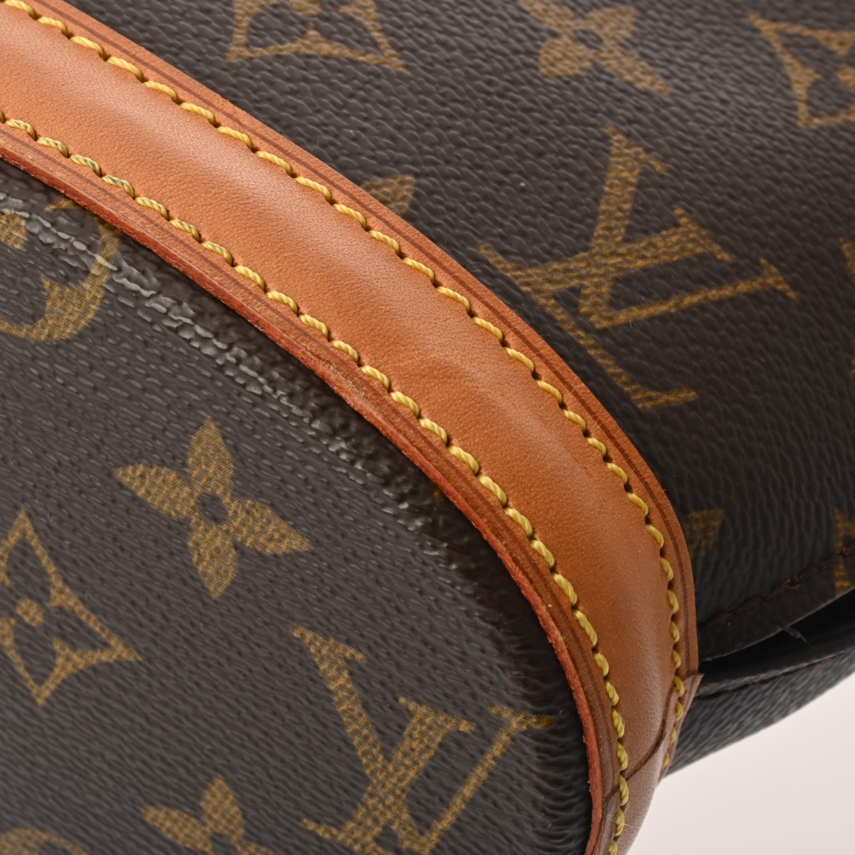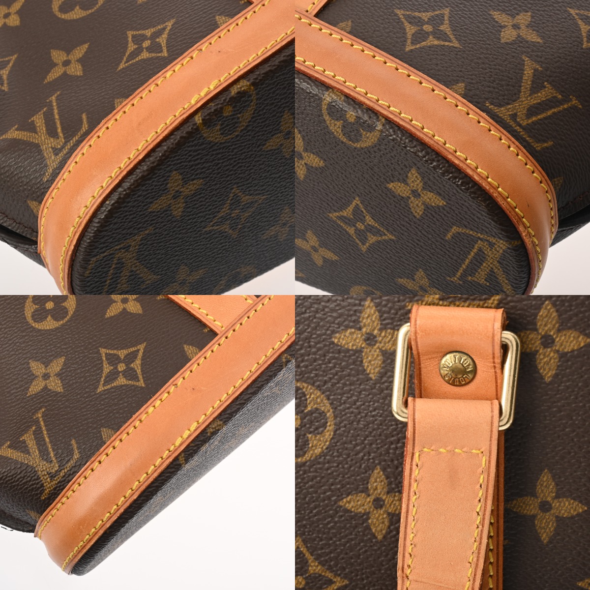 - 型崩れ、スレ、薄汚れ、ショルダーにクセ、ヌメ革部分にヤケやシミ、シワ、金具部分に変色やスリキズなど使用感がございます。