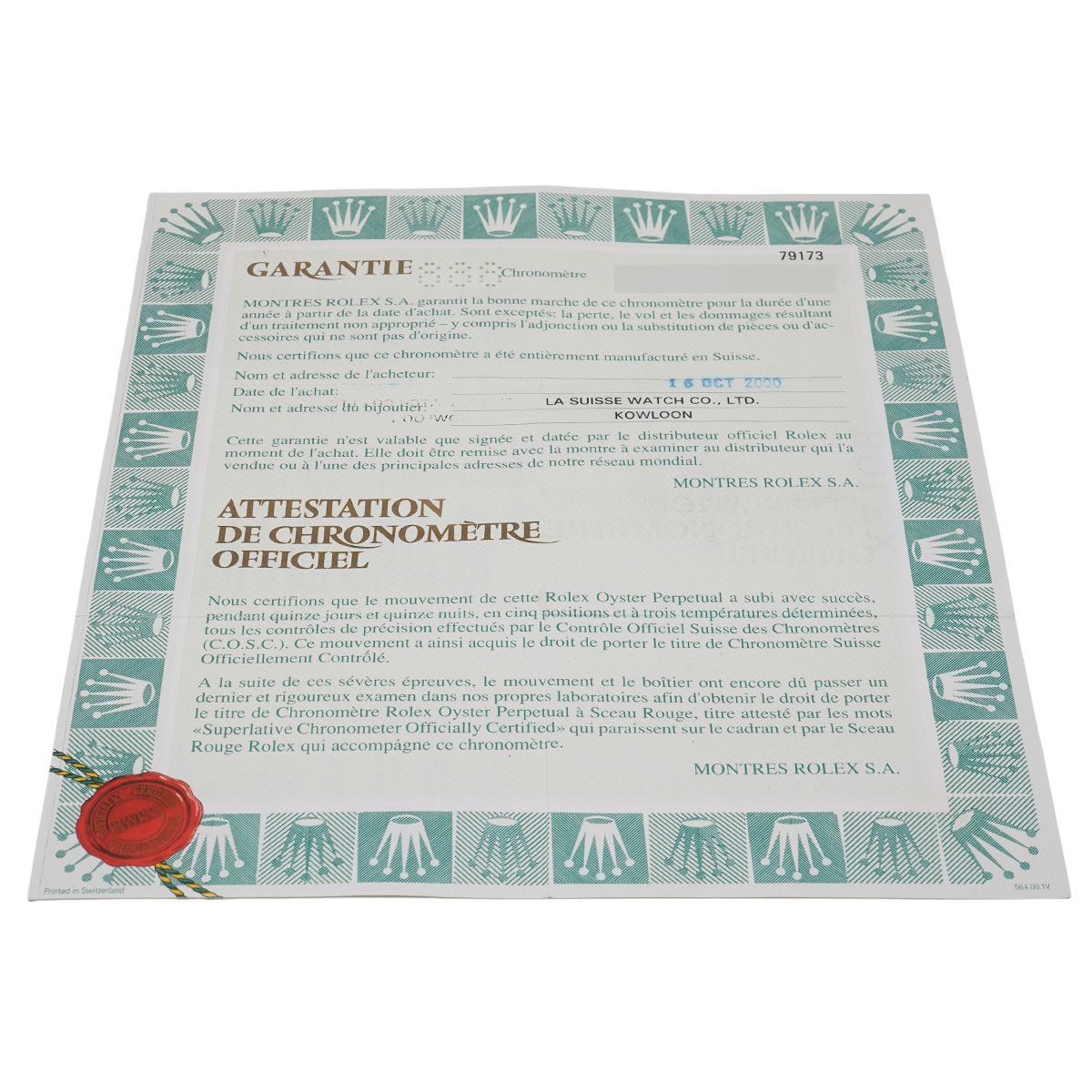- メーカー保証書( 2000年10月海外購入) / タグ