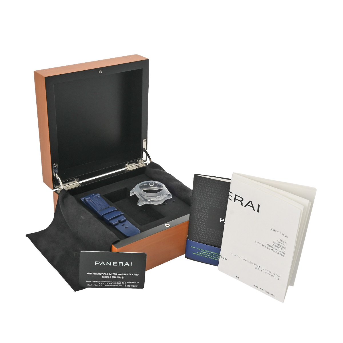 - メーカー保証書( 2020年9月購入) / 替えベルト( ラバー/ブルー) / 内箱/冊子 / 修理明細書(2026年3月ラグコレクターボタン交換)