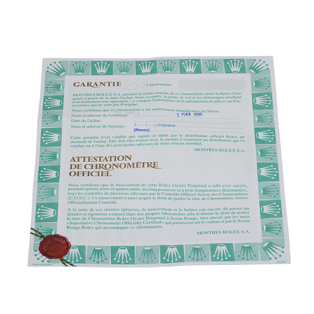 - メーカー保証書( 1999年3月海外購入)
