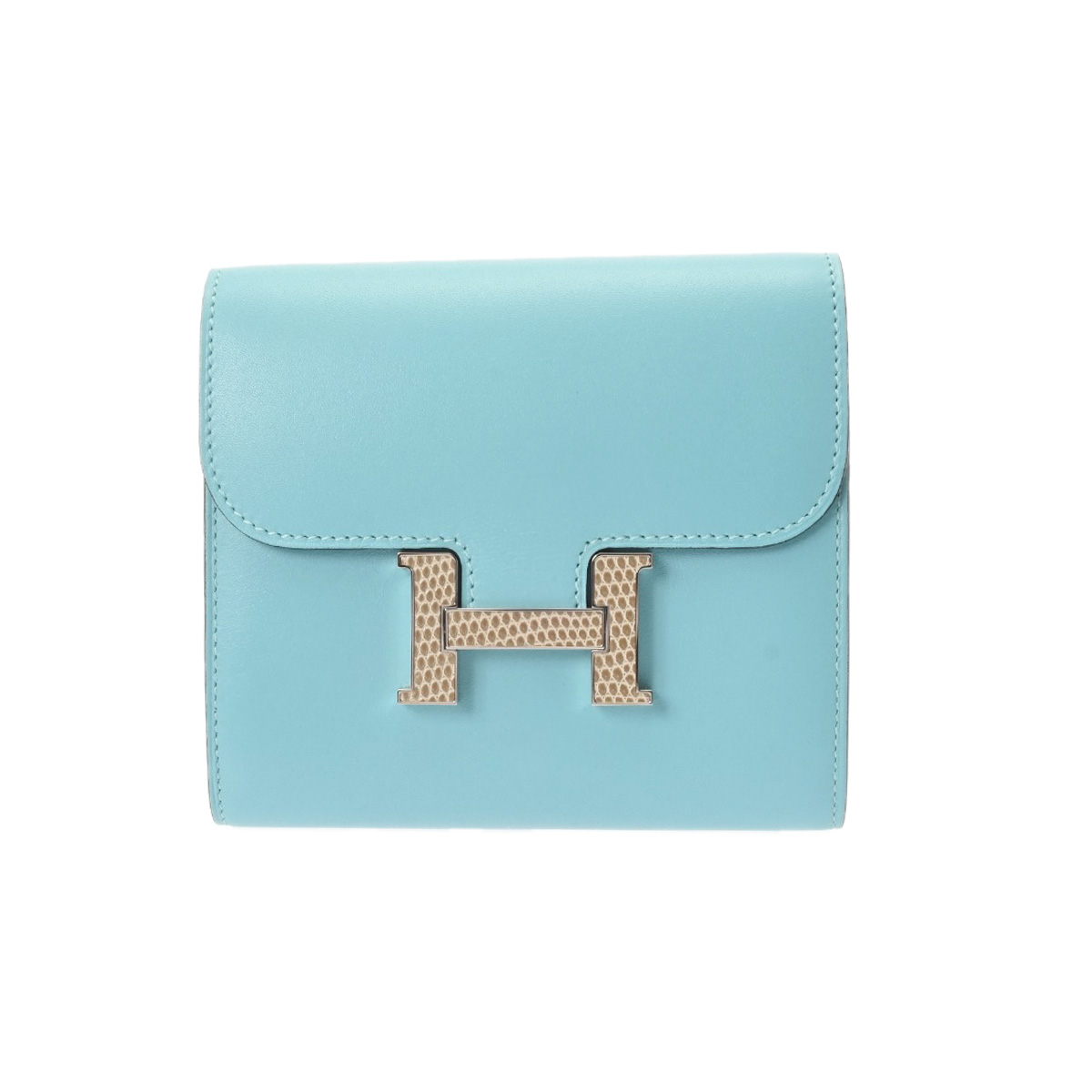 エルメス コンスタンス コンパクト ブルーアトール ヴォータデラクト/リザード ユニセックス 財布 【中古】【purse】