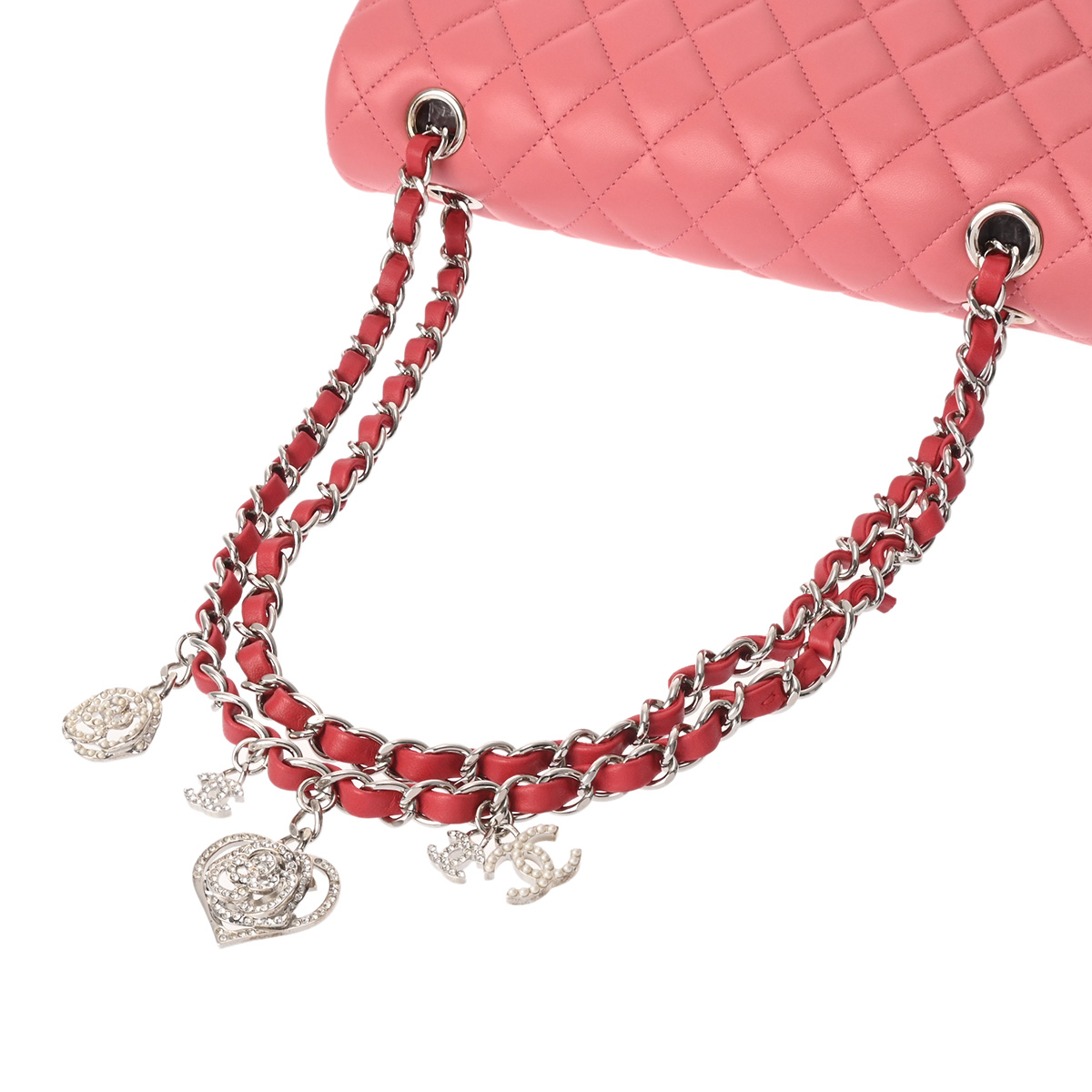 シャネル マトラッセ SフラップWチェーンショルダー 25 ピンク/レッド/ベージュ ラムスキン レディース バッグ 【中古】【bag】