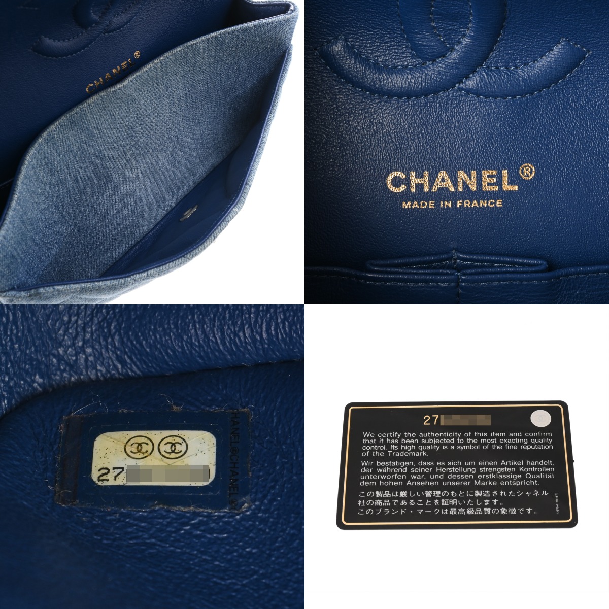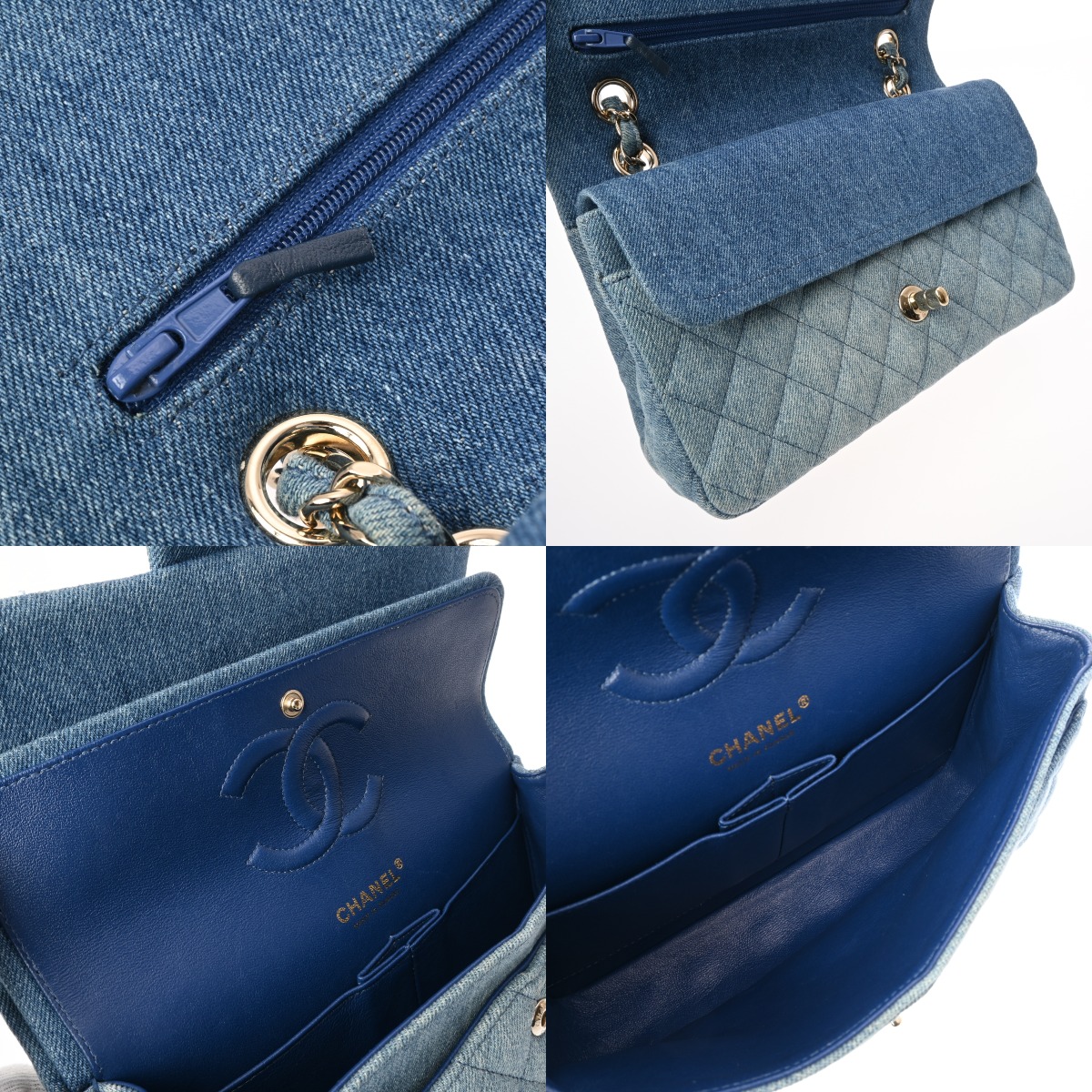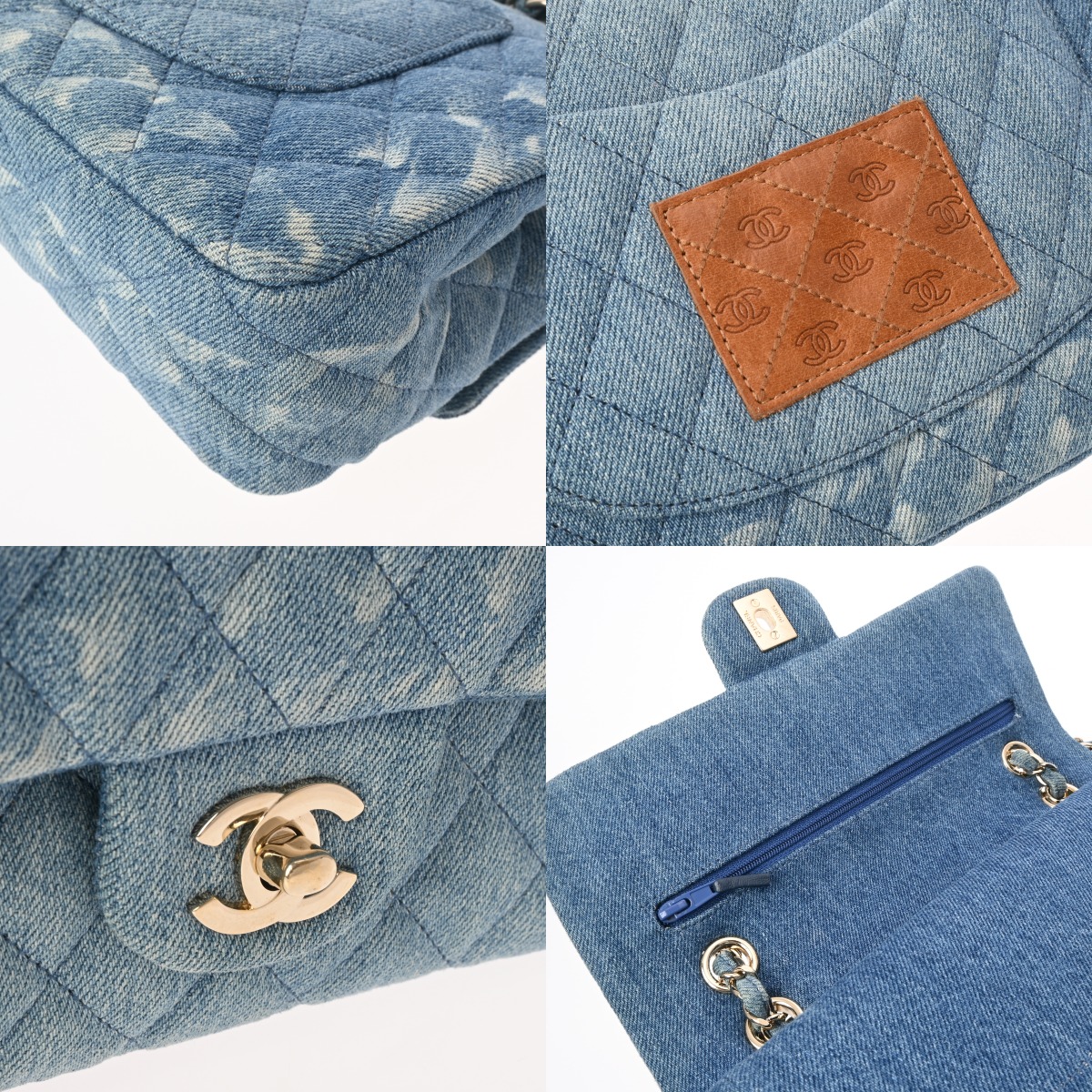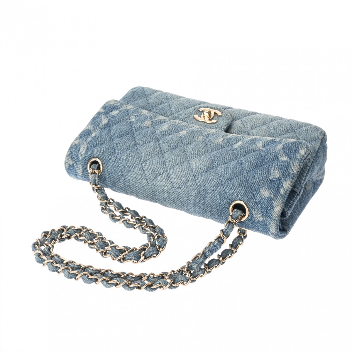 シャネル マトラッセ Wフラップ Wチェーンショルダー 25 ブルー A01112 デニム レディース バッグ 【中古】【bag】