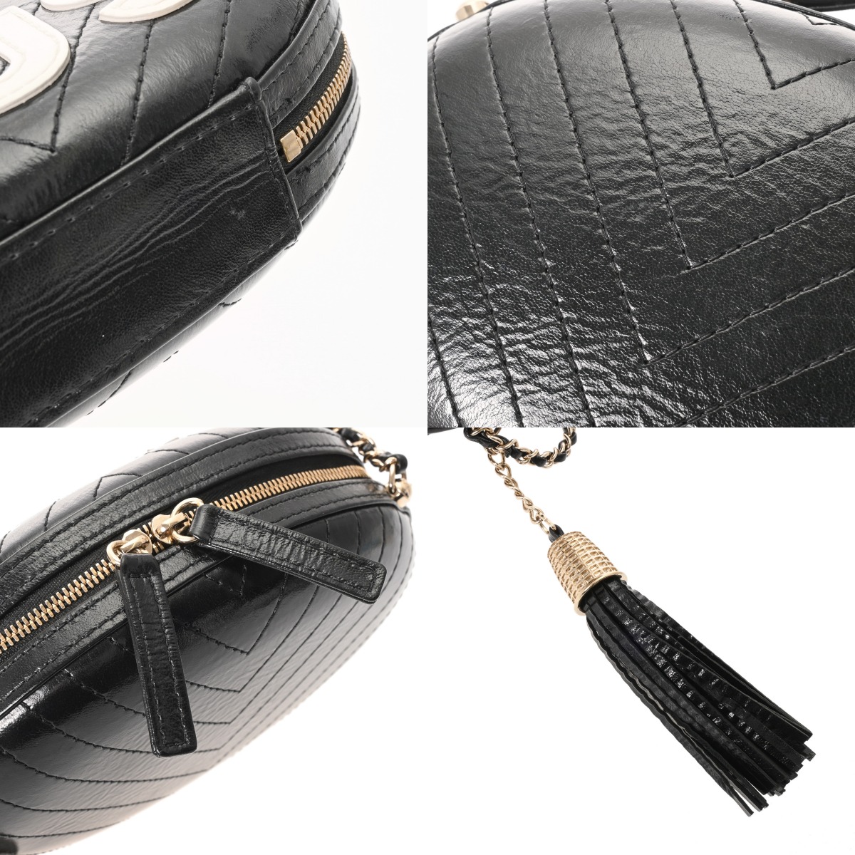 シャネル Vステッチ チェーンショルダー LA PAUSA ブラック カーフスキン レディース バッグ 【中古】【bag】