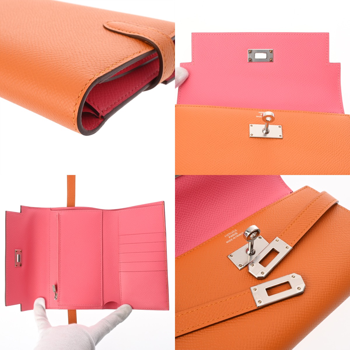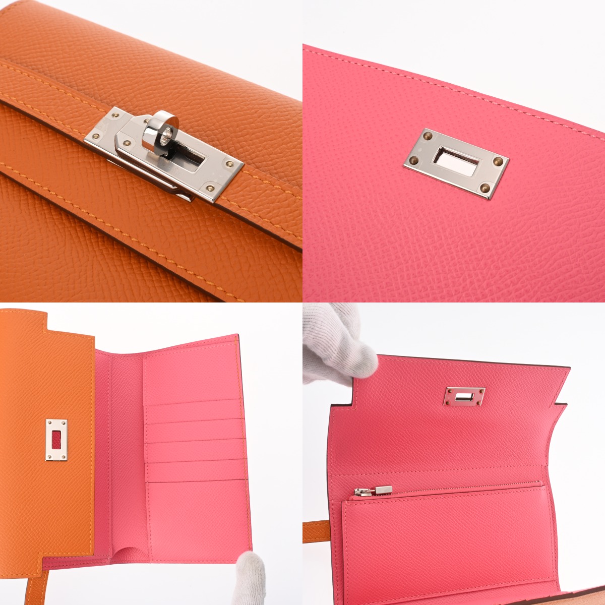 エルメス ケリーウォレット ディプライアント ミディアム ヴェルソ オレンジ/ローズアザレ ヴォーエプソン レディース 財布 【中古】【purse】