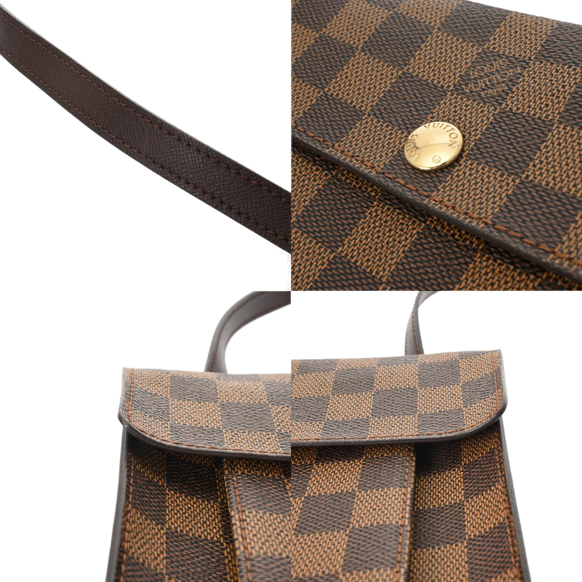- 若干つぶれ、テカリ、フラップに反り、ショルダーにクセ、押し跡、ハゲなどダメージ、金具にスリキズなど使用感がございます。