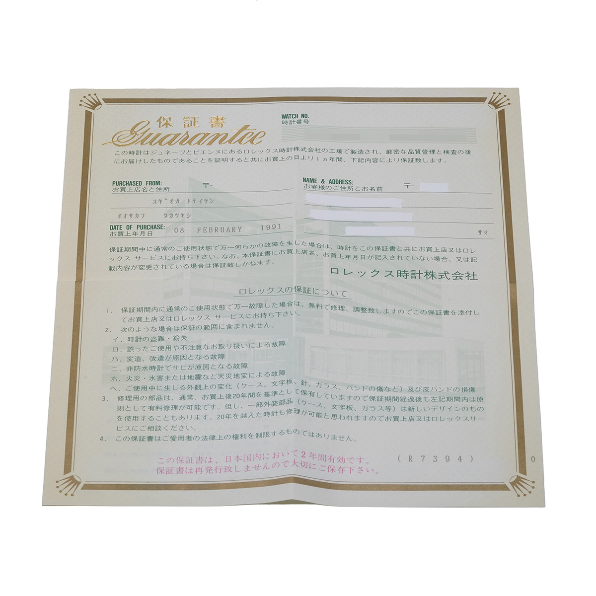 - メーカー保証書( 1991年2月国内購入)