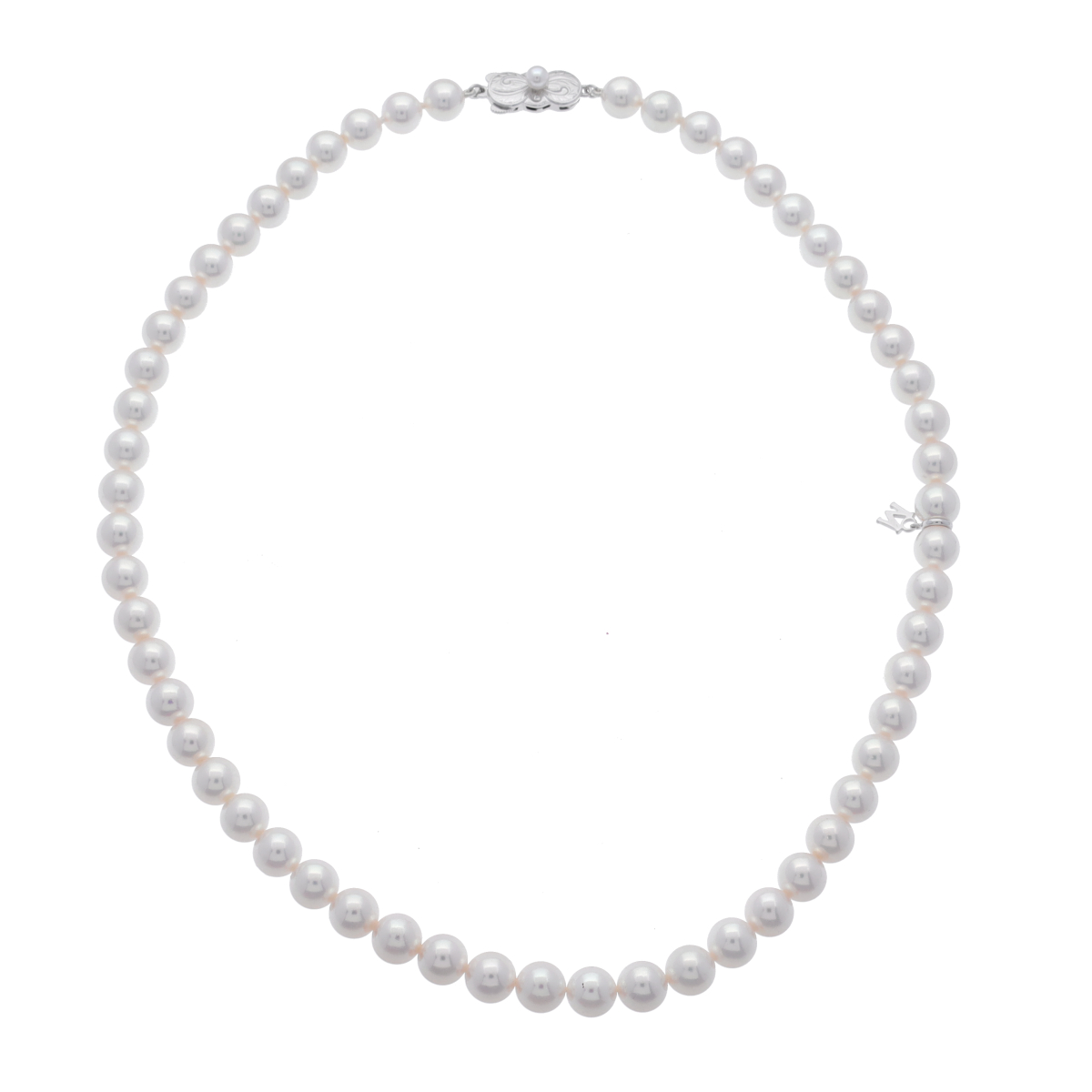 ミキモト パールネックレス 7.0-7.5mm Mチャーム付き SIL刻印 シルバー K18ホワイトゴールド WG/パール レディース ジュエリー 【中古】【jewelry】