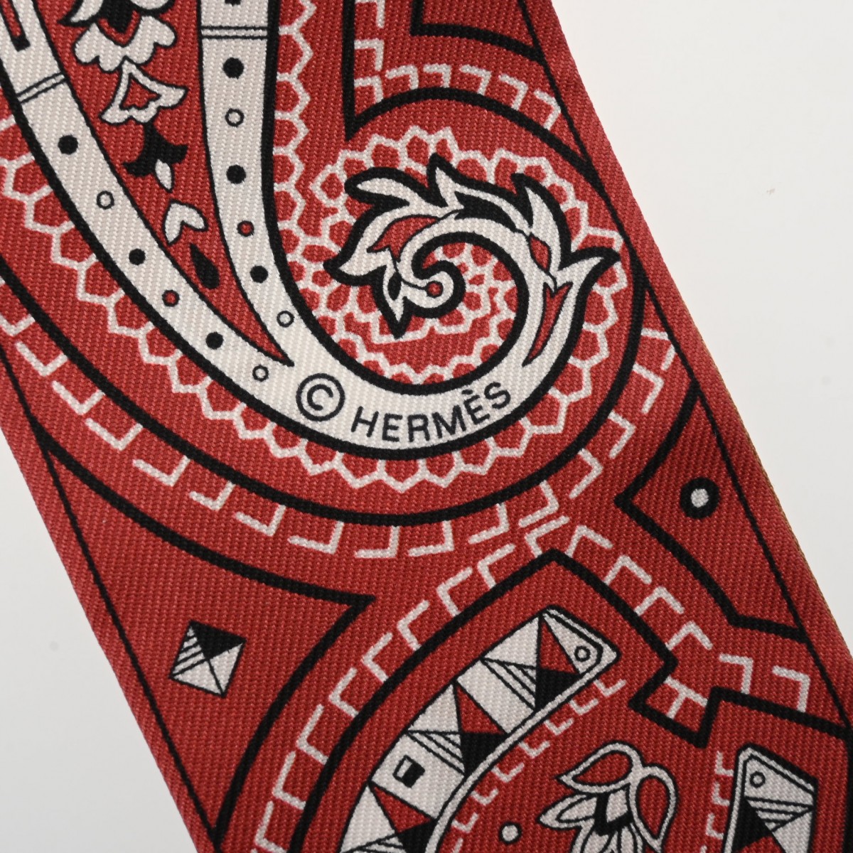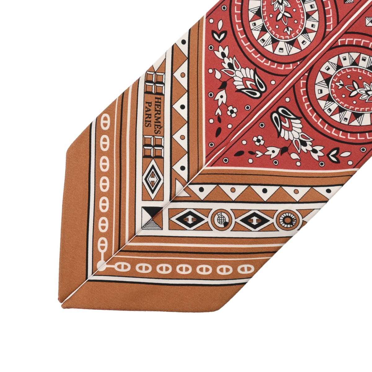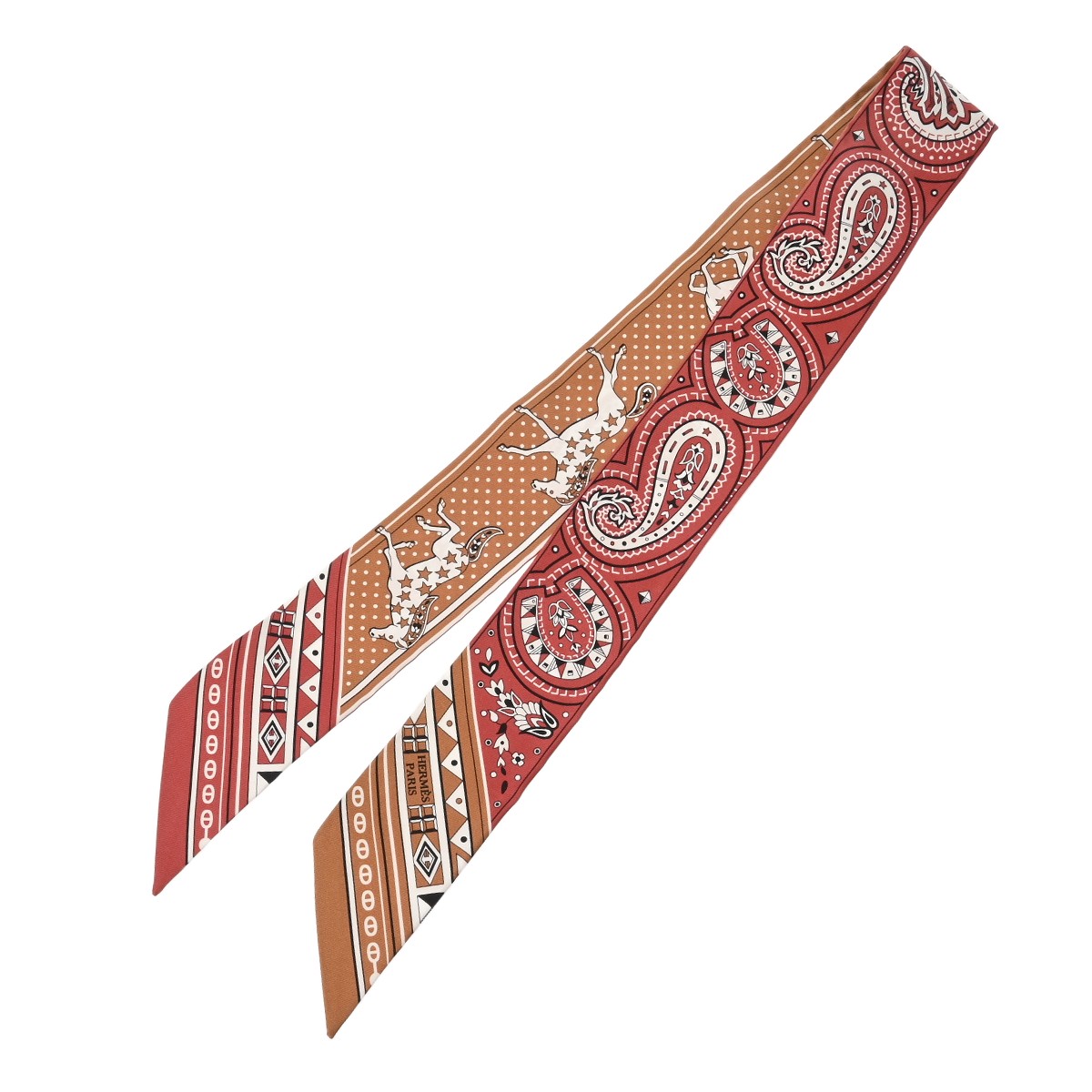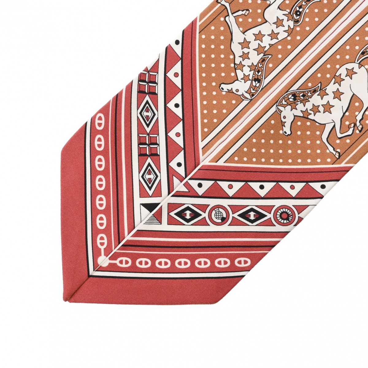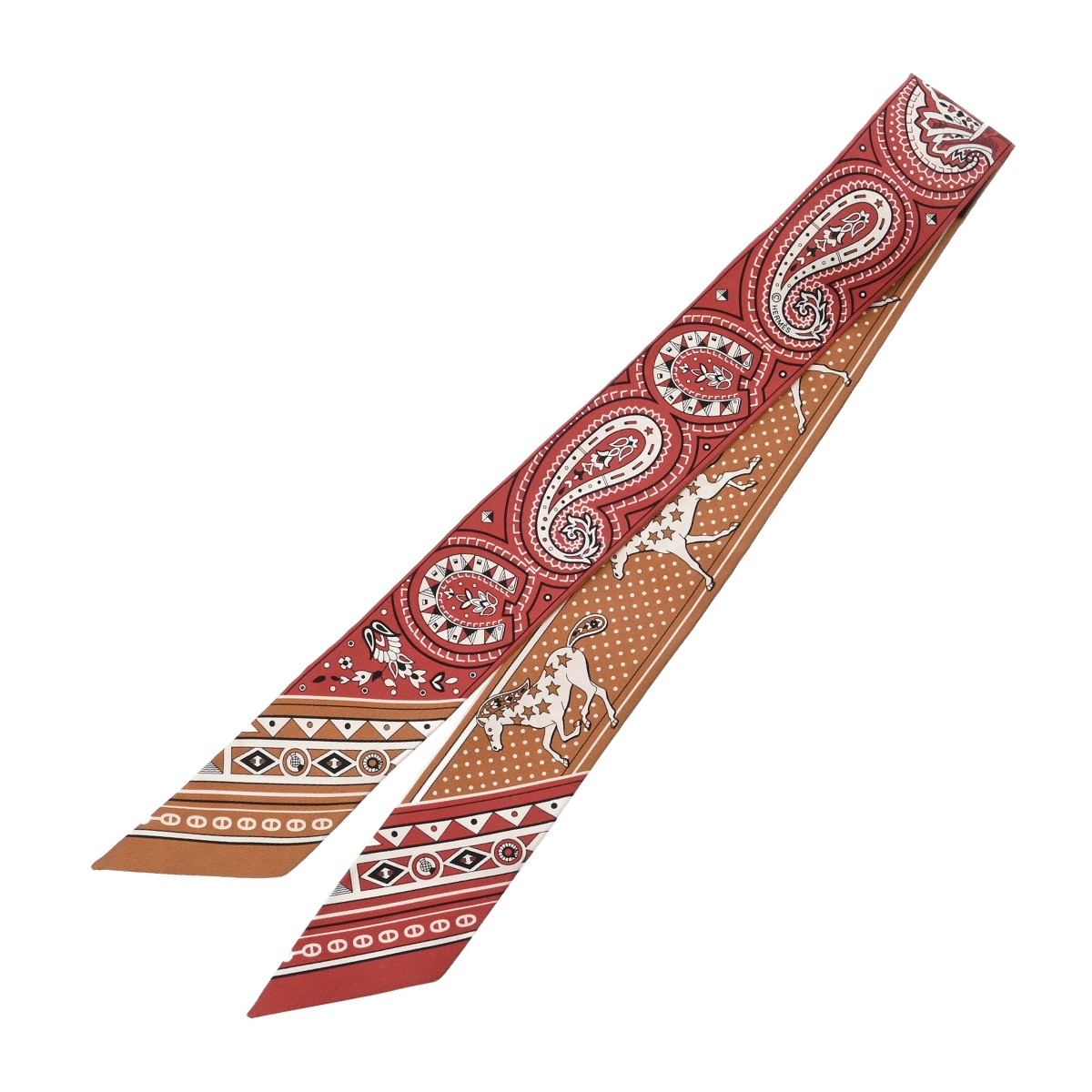 エルメス ツイリー CHEVAL DE COEUR レッド系/ライトブラウン系 シルク100% レディース 【未使用】【other】