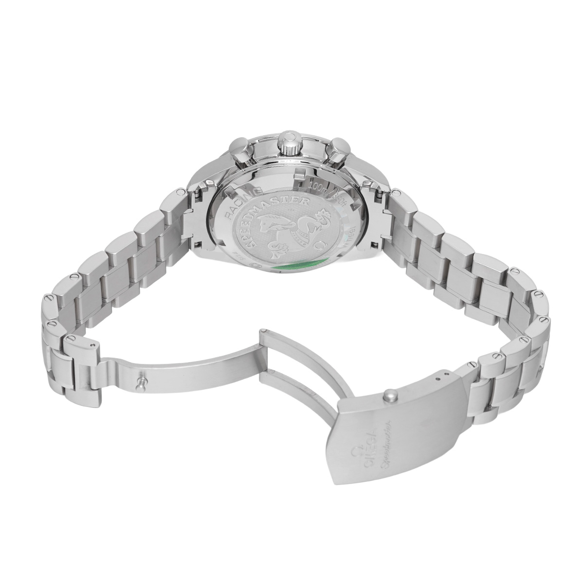 コメントケースを小径化して腕上での収まりの良さを改善すると共に、デイト表示付きの自動巻きムーブメントや100m防水などで、より日常使用に向くモデルとして仕立てた自動巻きのスピードマスターは、歴代モデルのすべてが大変に人気の高いものになっていますが、こちらは2012年にコーアクシャル脱進機とコラムホイール式のクロノグラフ機構を搭載して大幅にグレードアップしたレーシングです。