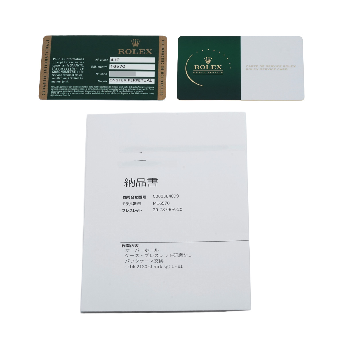 - メーカー保証書( 2013年10月国内購入) / メーカー箱/冊子/タグ / 納品書(2024年6月オーバーホール他)サービスカード(有効期限2026年7月)