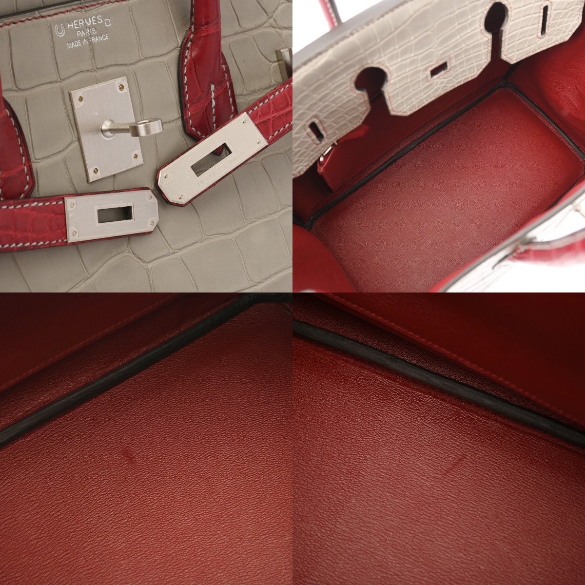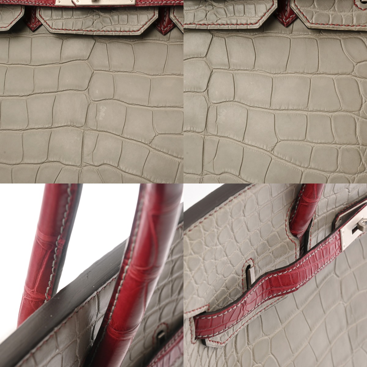 エルメス バーキン 35 SPオーダー パールグレー/ルージュアッシュ アリゲーターマット レディース バッグ 【中古】【bag】
