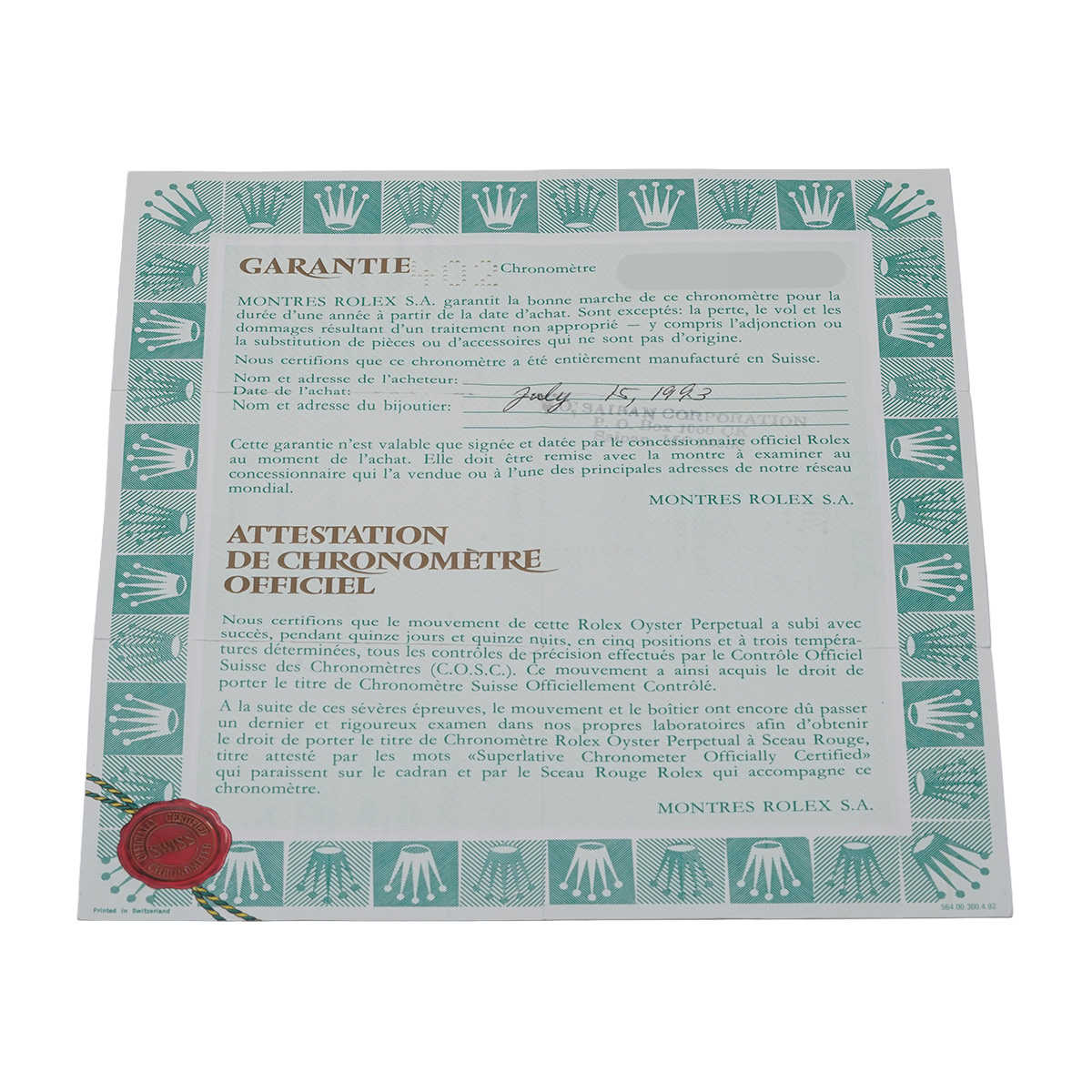 - メーカー保証書( 1993年7月海外購入) / メーカー箱(ダメージ)