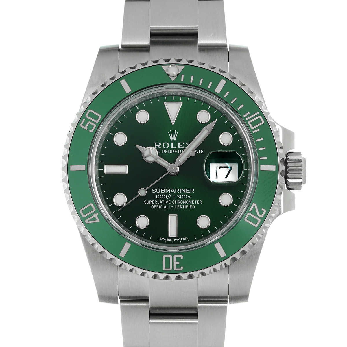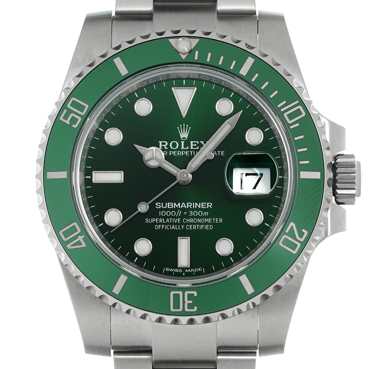また鮮やかな発色のためにゴールドを使用したというグリーンダイアルとグリーンのベゼルインサートの組み合わせから、ファンの間ではマーベル・コミックに登場する全身グリーンの大男、「ハルク」の愛称で呼ばれています。 -