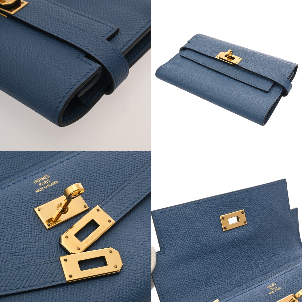 エルメス ケリーウォレット コンバイン ミディアム ブルーブライトン ヴォーエプソン レディース 財布 【中古】【purse】