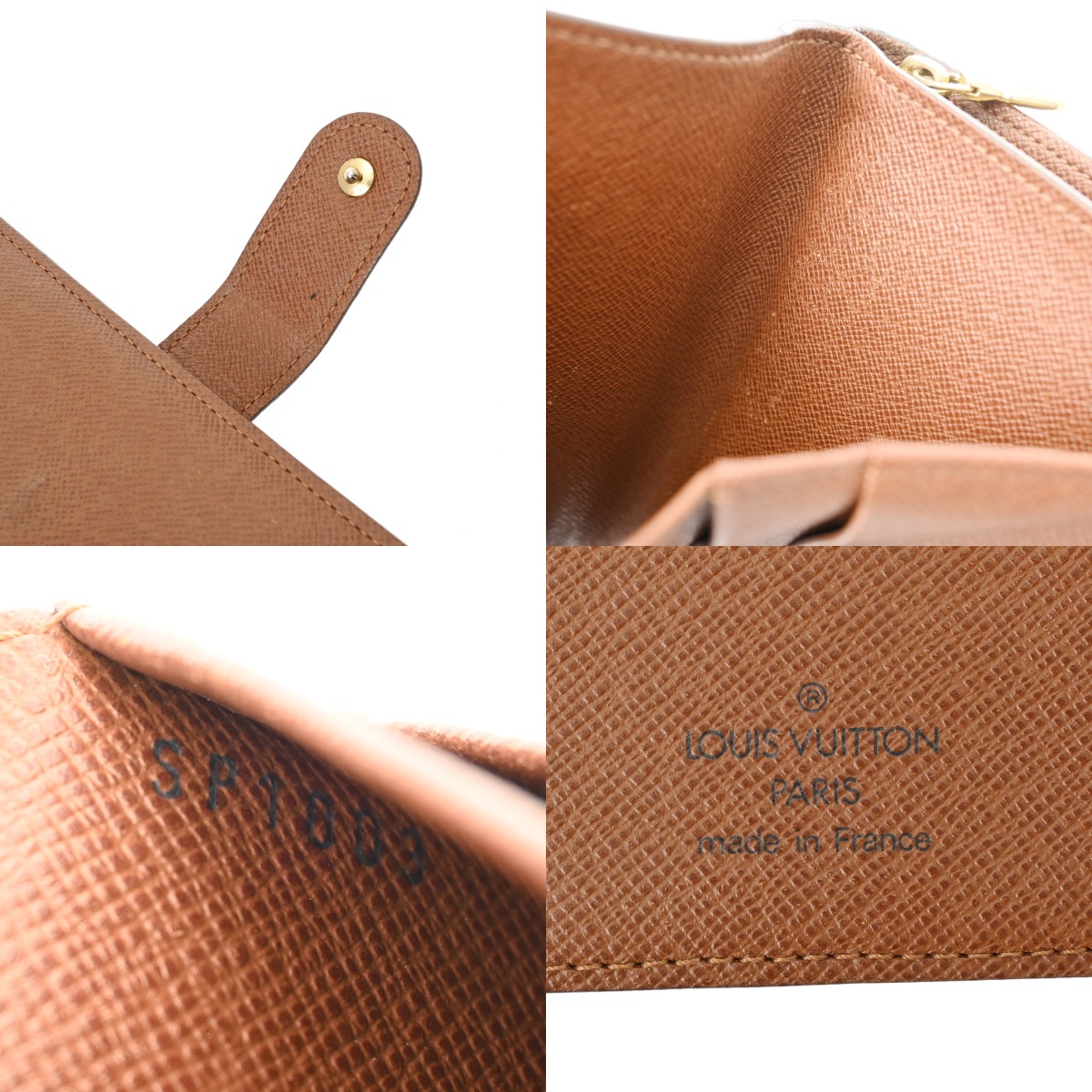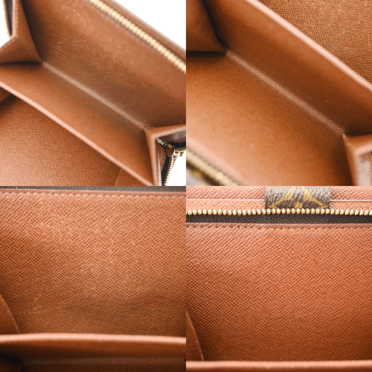 - 少々のつぶれやぺたつき、テカリ、コバにスレや割れ、金具にメッキがれやスリキズ、開閉部分に反りなど使用感がございます。