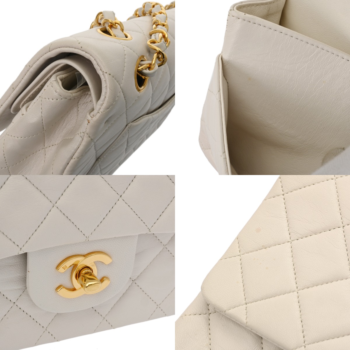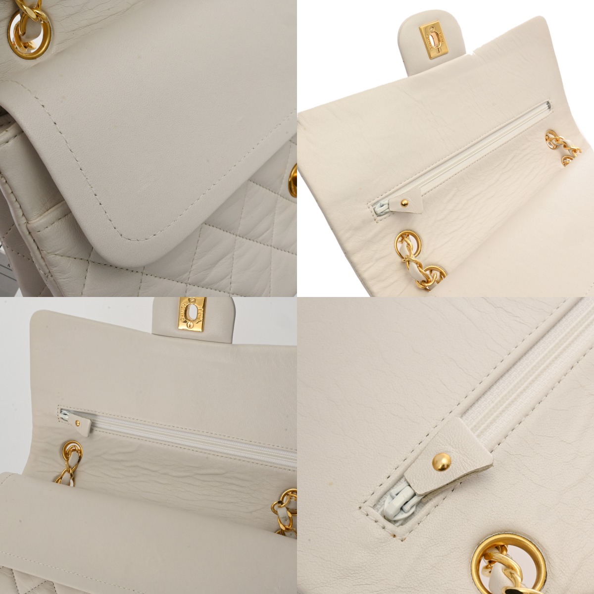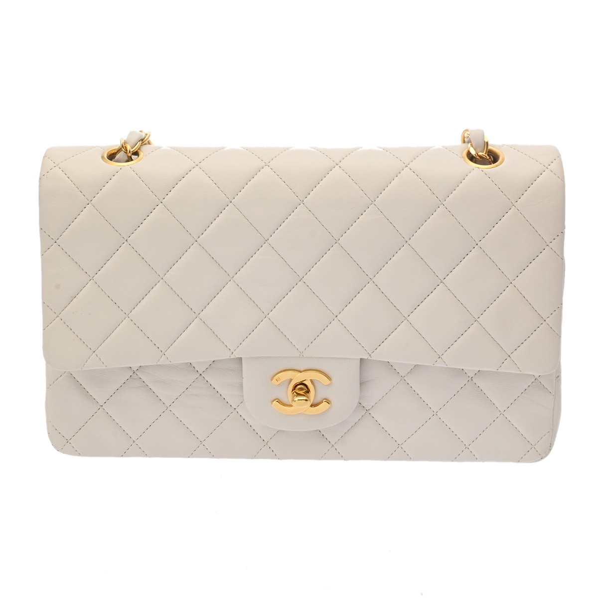 シャネル マトラッセ Wフラップ Wチェーンショルダー 25 ホワイト A01112 ラムスキン レディース バッグ 【中古】【bag】