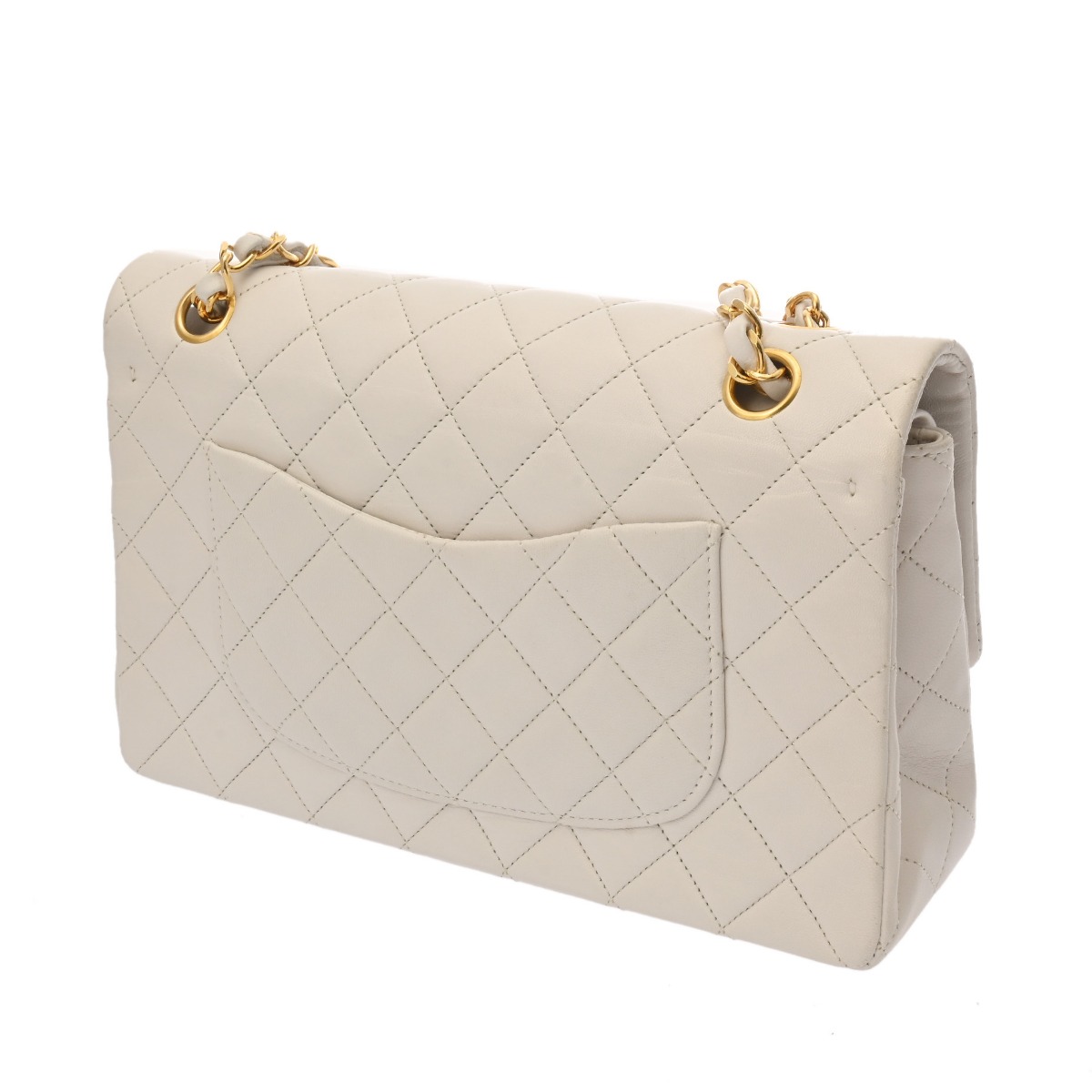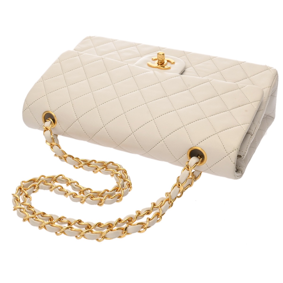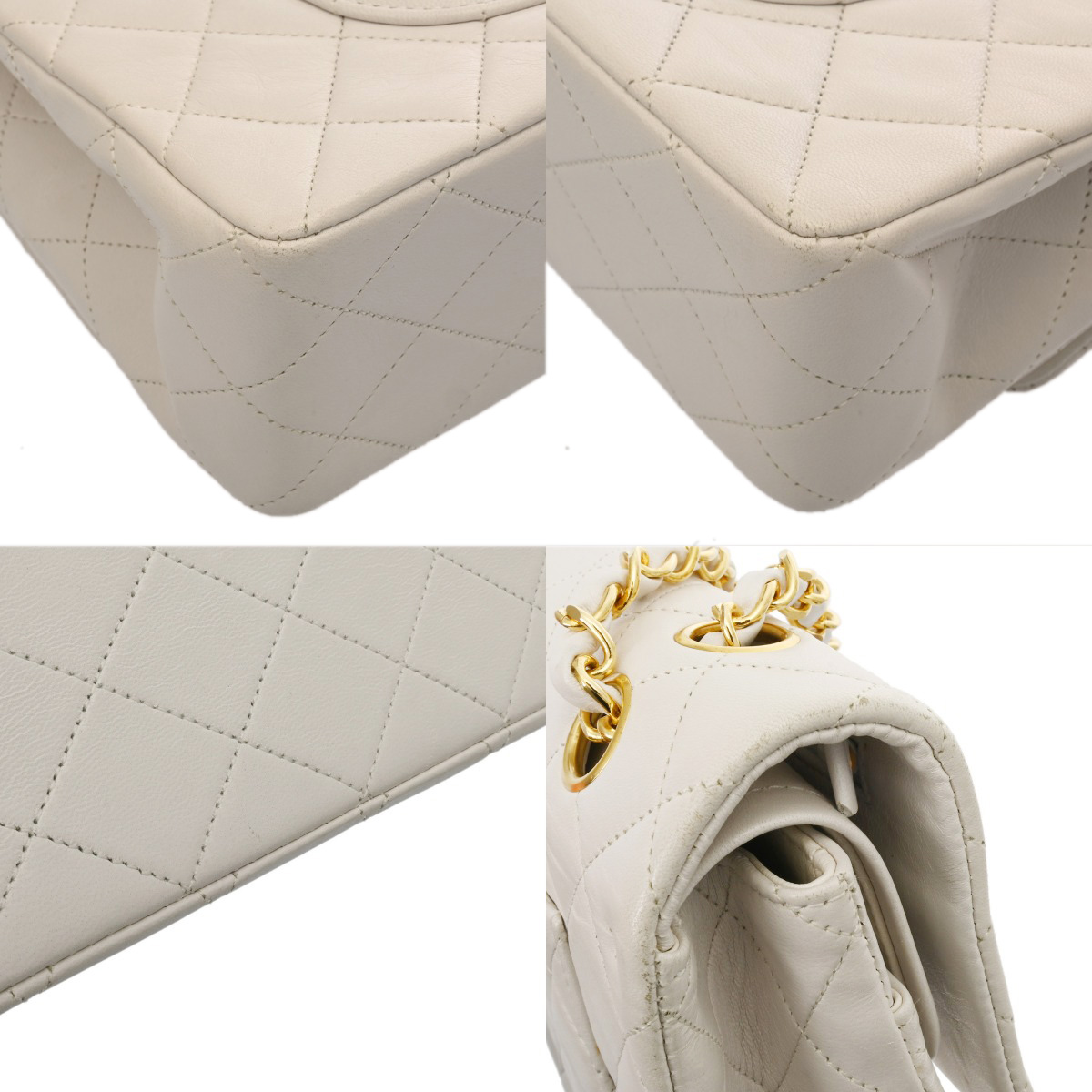 シャネル マトラッセ Wフラップ Wチェーンショルダー 25 ホワイト A01112 ラムスキン レディース バッグ 【中古】【bag】