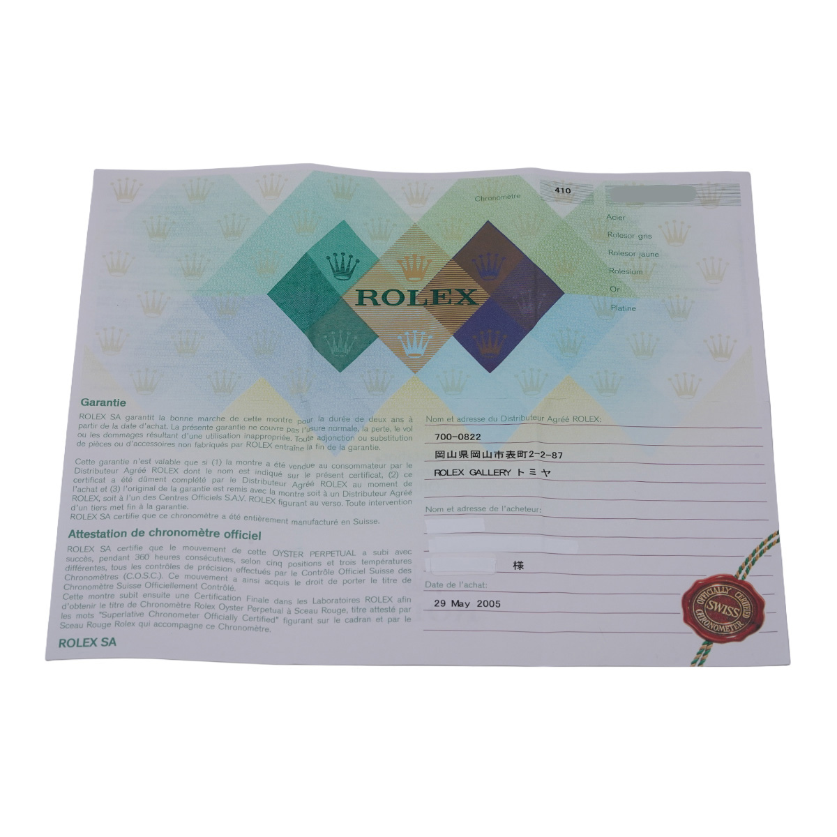 - メーカー保証書( 2005年5月国内購入) / 内箱/冊子
