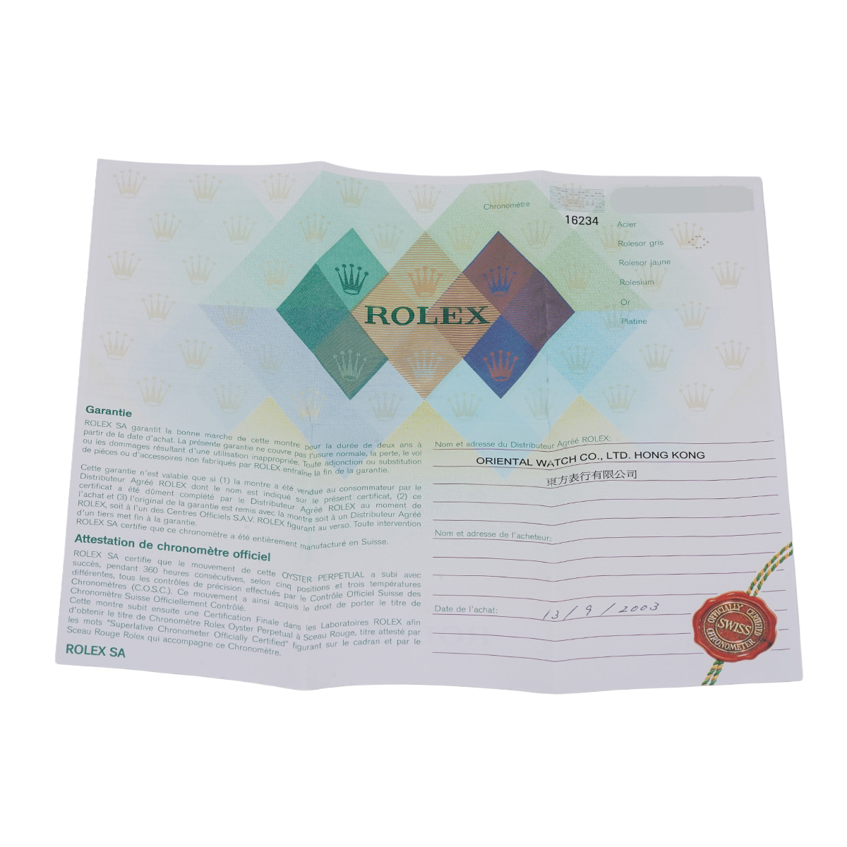 - メーカー保証書( 2003年9月海外購入)