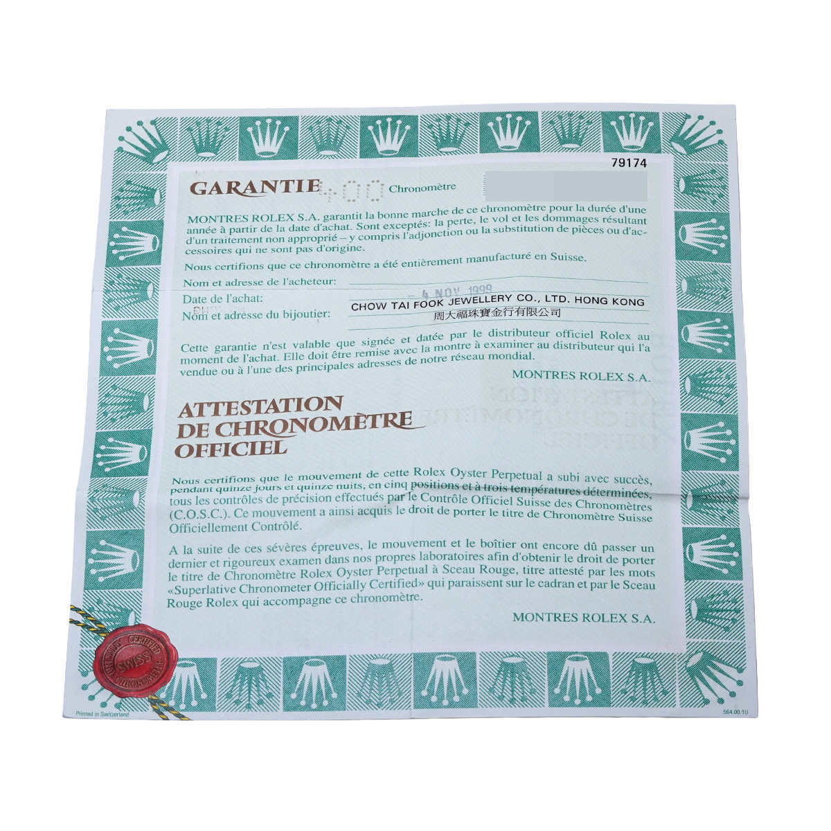 - メーカー保証書( 1999年11月海外購入) / メーカー箱/タグ
