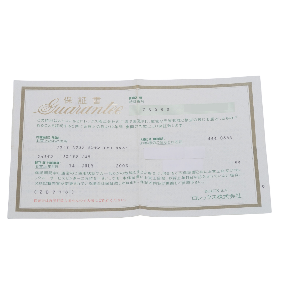 - メーカー保証書( 2003年7月国内購入) / メーカー箱