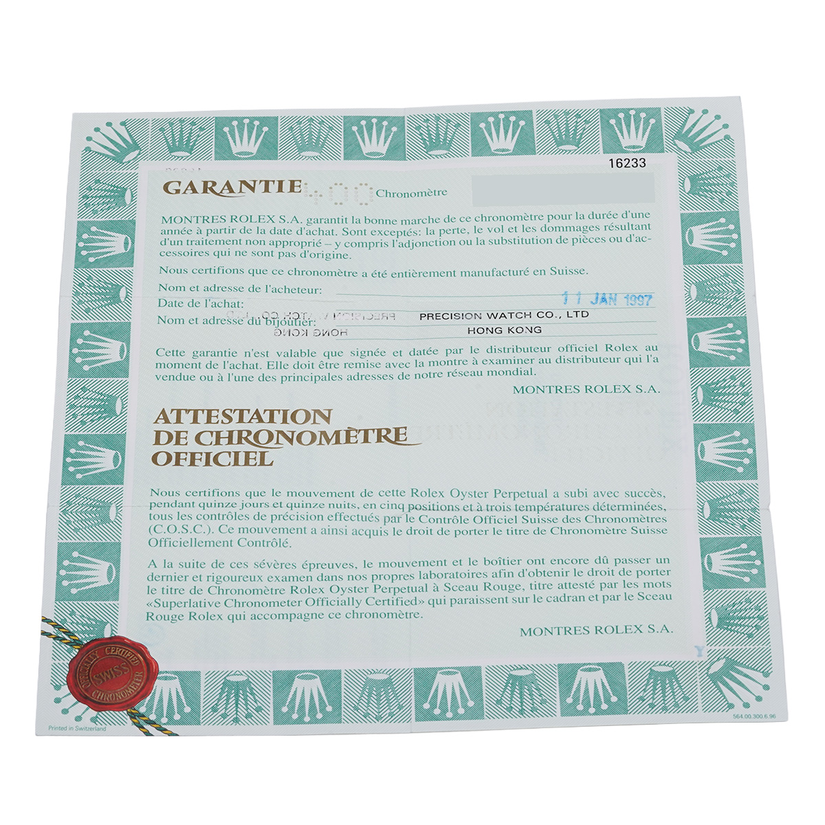 - メーカー保証書( 1997年1月海外購入) / メーカー箱/冊子/タグ