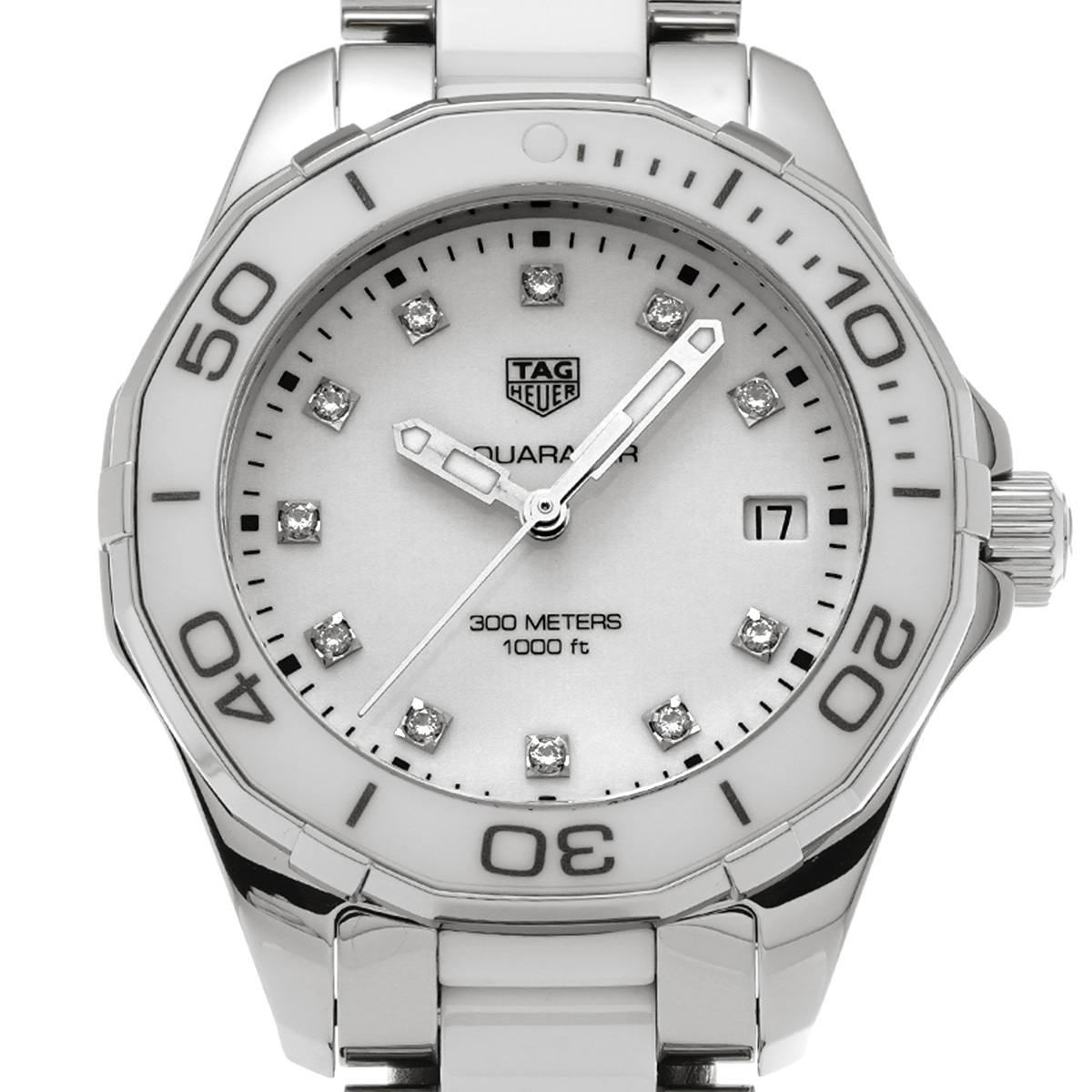 タグ ホイヤー アクアレーサー クォーツ WAY131D.BA0914 ホワイト/ダイヤモンド レディース 時計 【中古】【wristwatch】