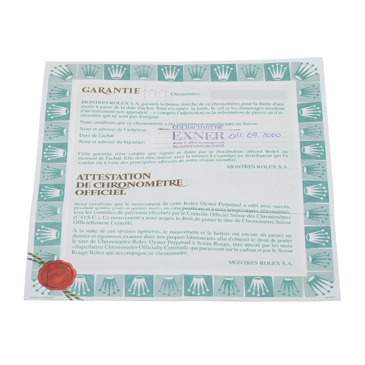 - メーカー保証書( 2000年9月海外購入)