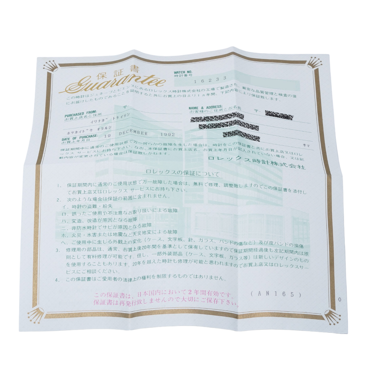 - メーカー保証書( 1992年12月国内購入)