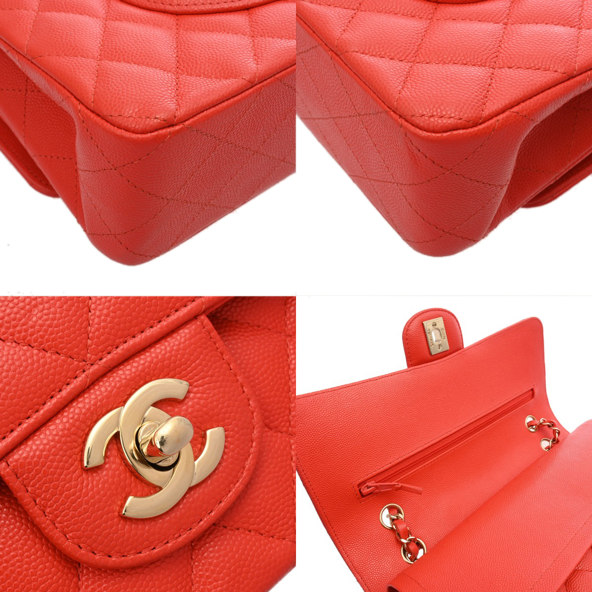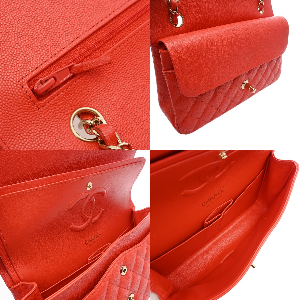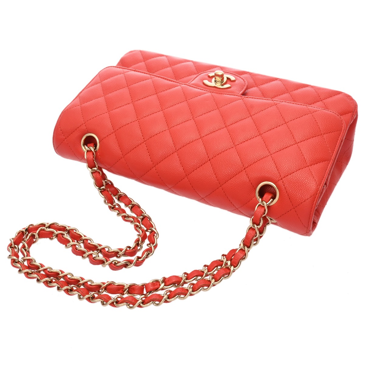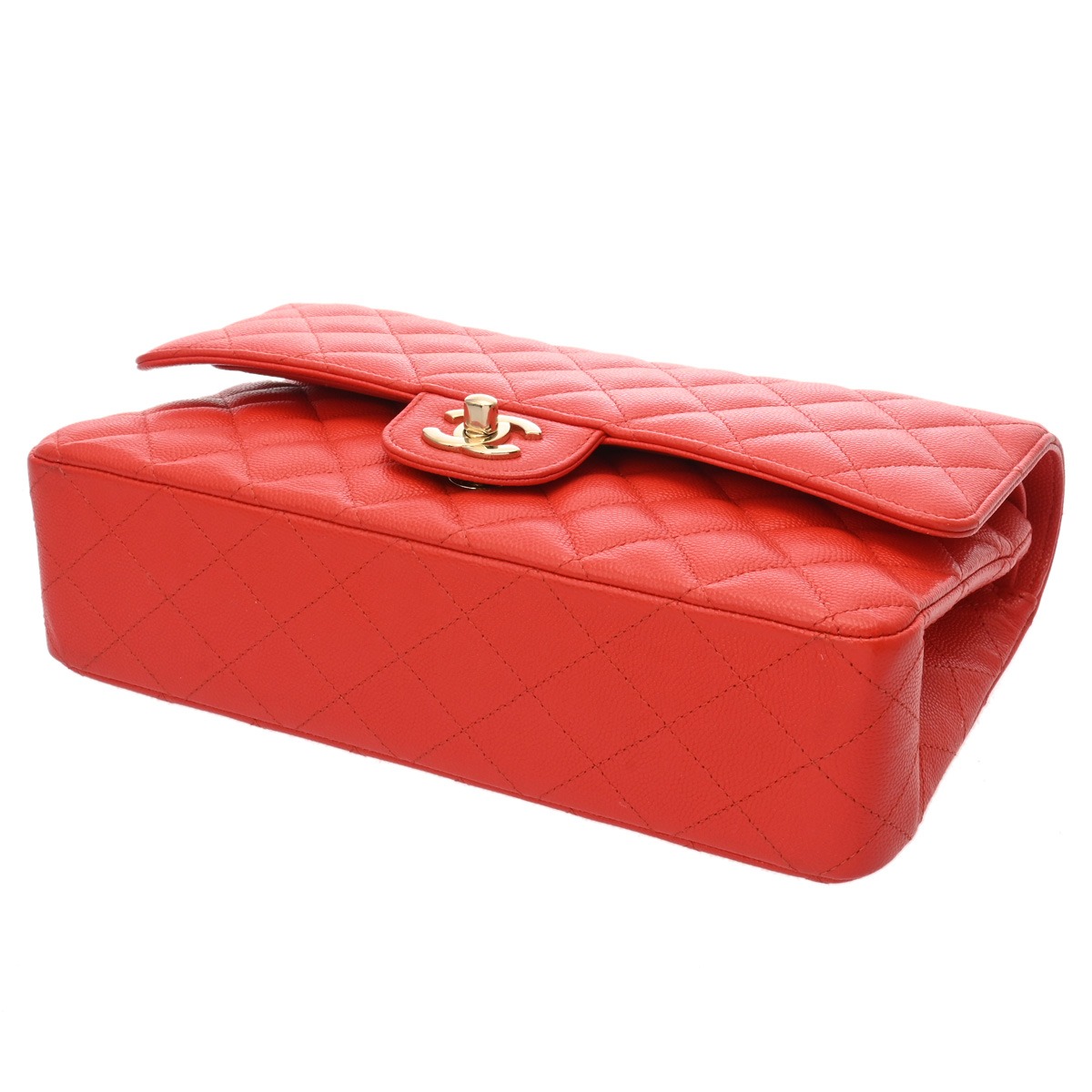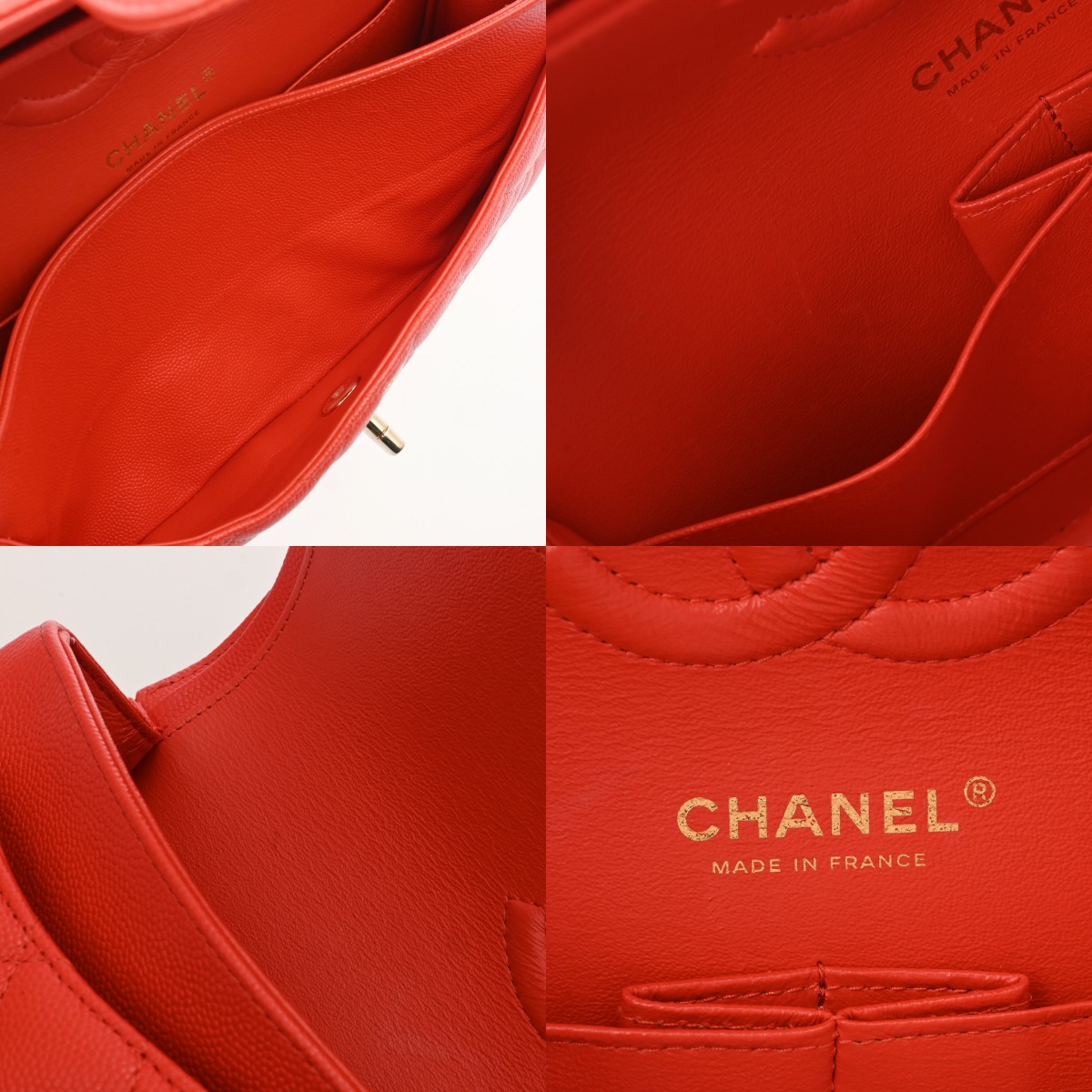 シャネル マトラッセ Wフラップ Wチェーンショルダー 25cm レッド A01112 キャビアスキン レディース バッグ 【中古】【bag】