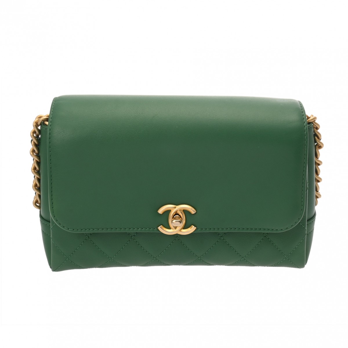 シャネル マトラッセ チェーンショルダー グリーン カーフスキン レディース バッグ 【中古】【bag】