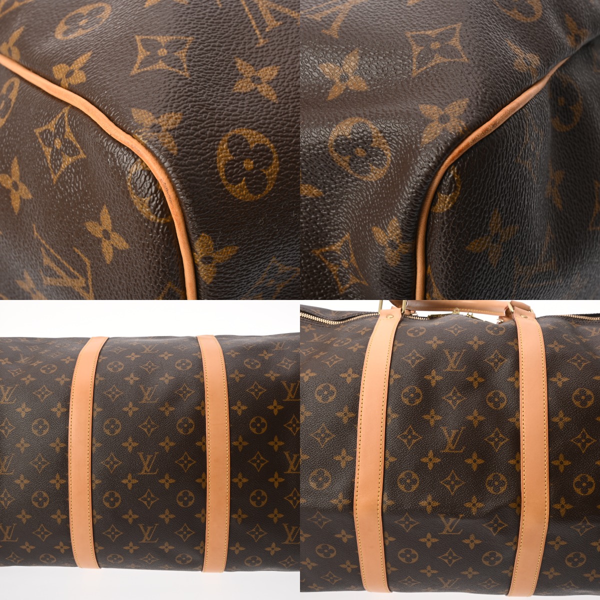 - たたみクセ、べたつき、テカリ、スレ、薄汚れ、ショルダーにクセ、ヌメ革にヤケ、シミ、金具に色ハゲ、スリキズなど少々使用感がございます。