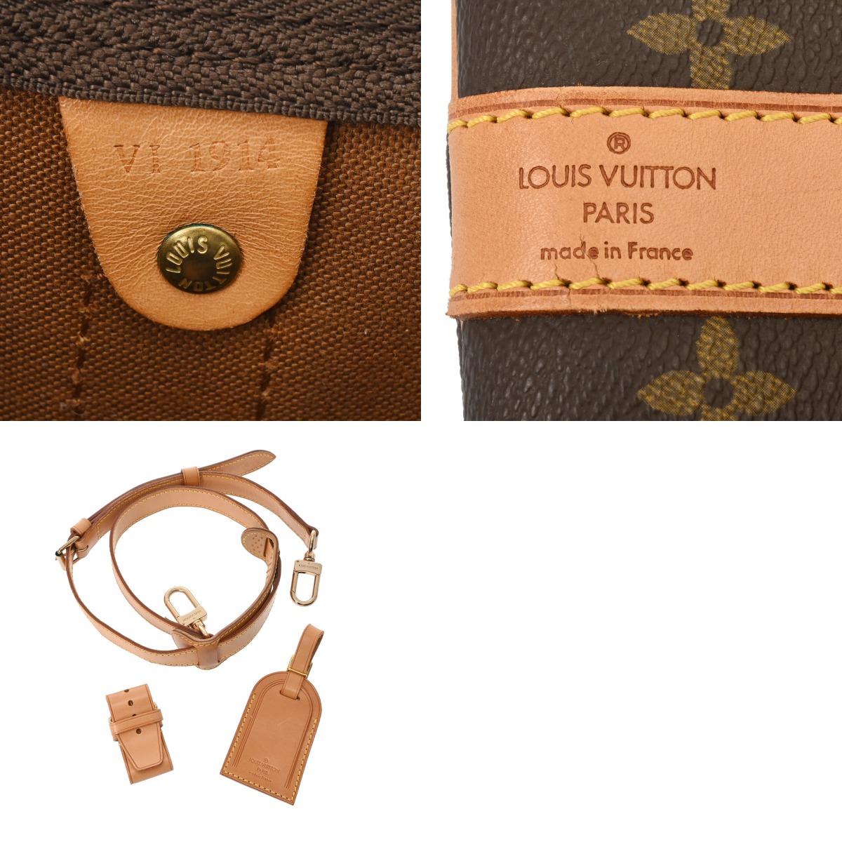 - つぶれ、たたみクセ、ショルダーにクセ、ヌメ革にコバスレ、ヤケやシミ、シワ、薄汚れ、金具にくすみやスリキズなど使用感がございます。