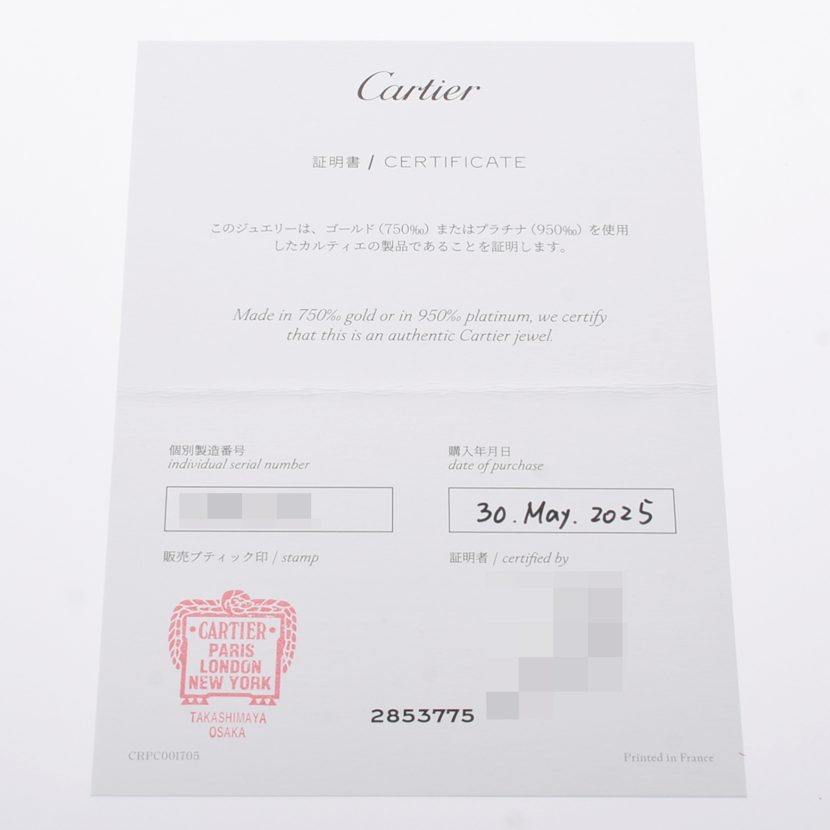 - メーカー保証書( 2025年5月国内購入)