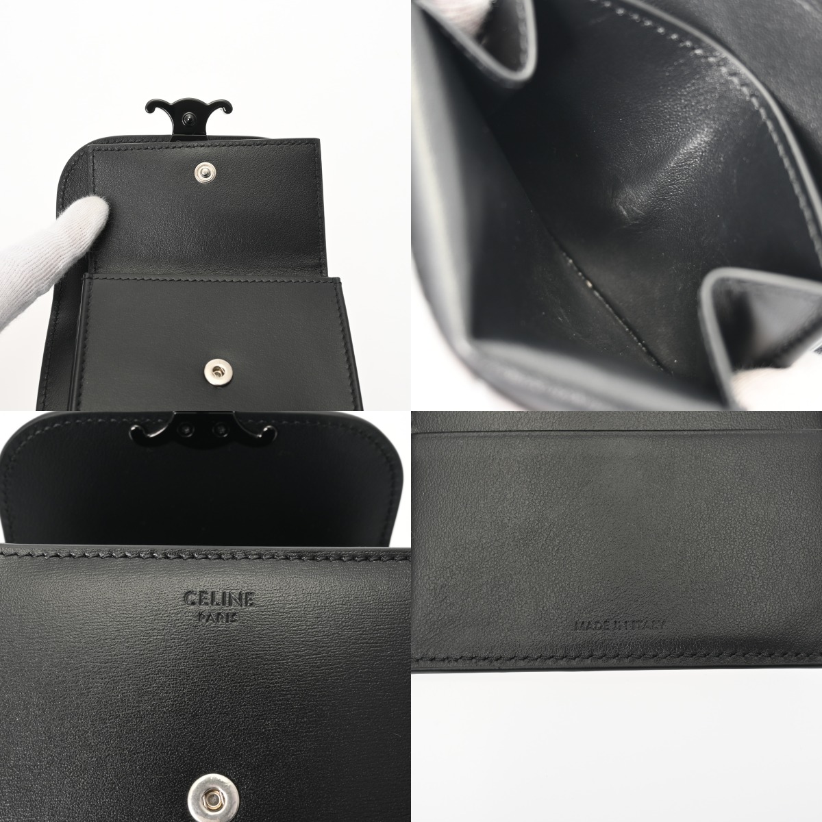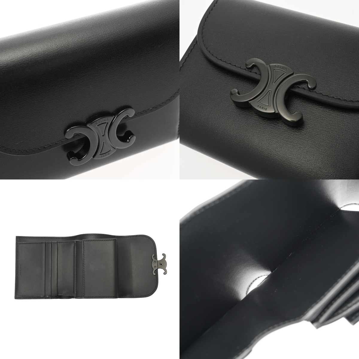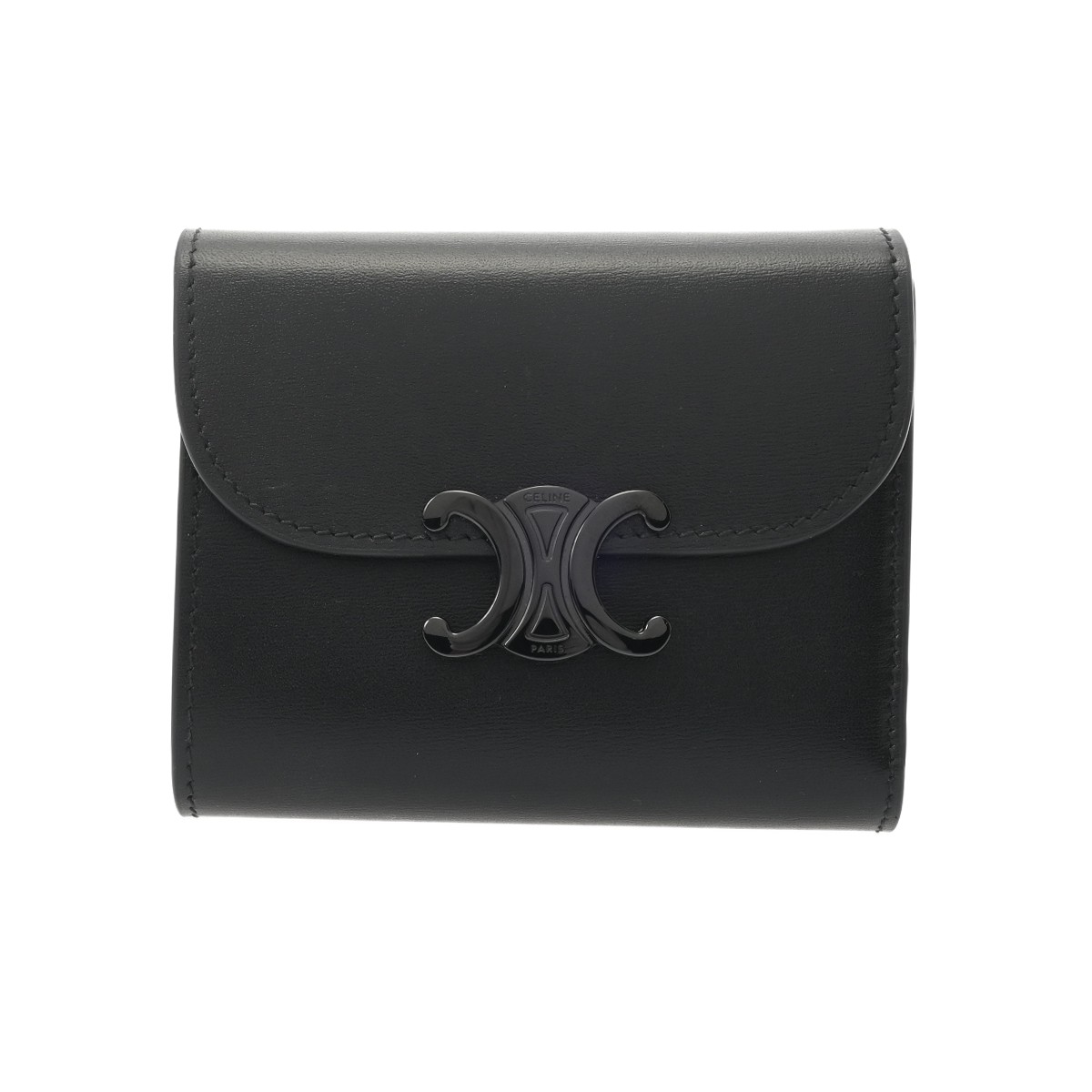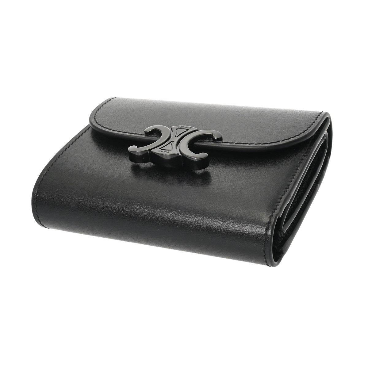 セリーヌ トリンオフ スモールフラップウォレット ブラック 10D783DPV.38NN シャイニーカーフ レディース 財布 【中古】【purse】
