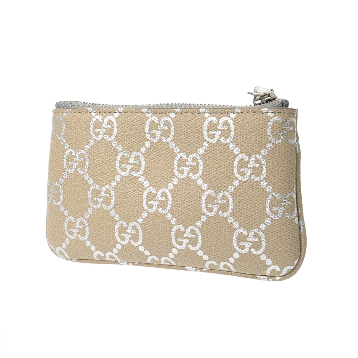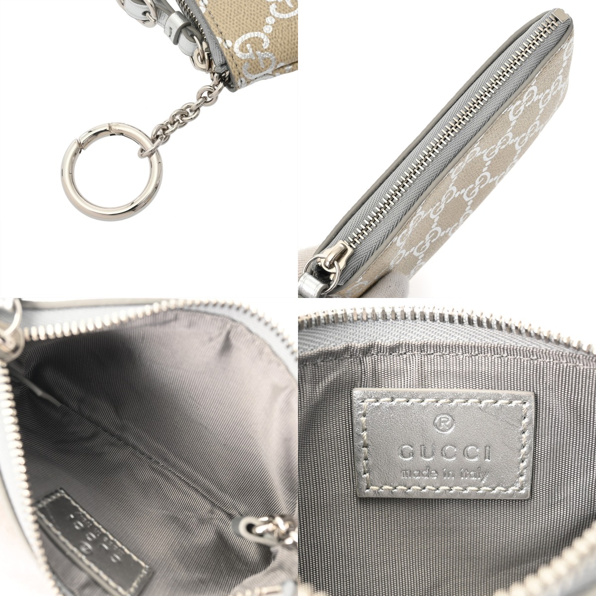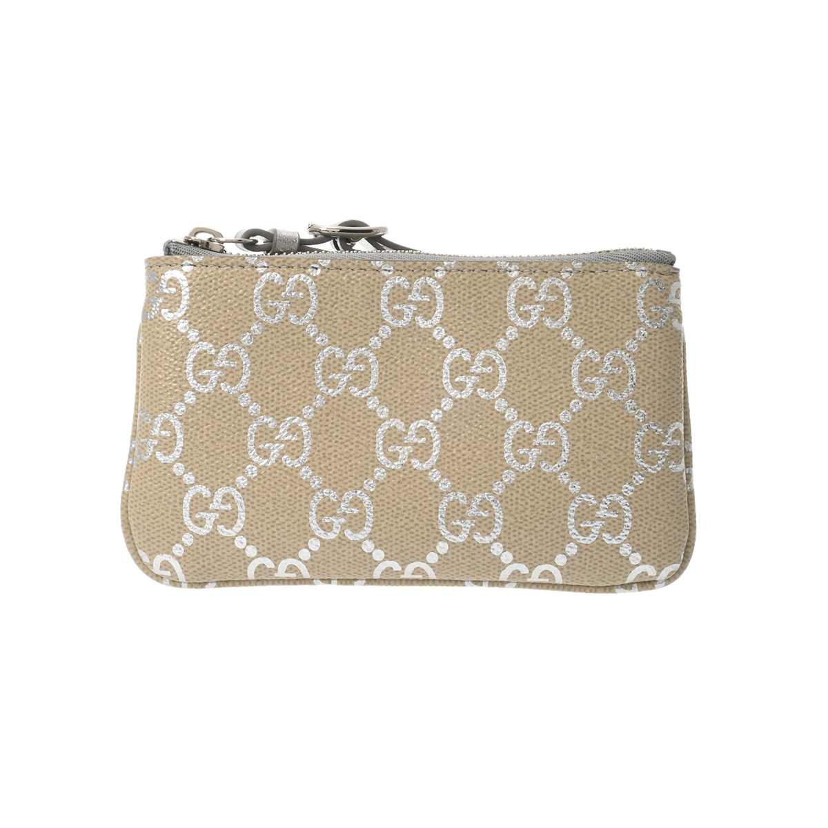 グッチ GGエンブレム キーポーチ ライトベージュ/メタリックシルバー 819113 0416 コーティングファブリック/レザー ユニセックス 財布 【中古】【purse】