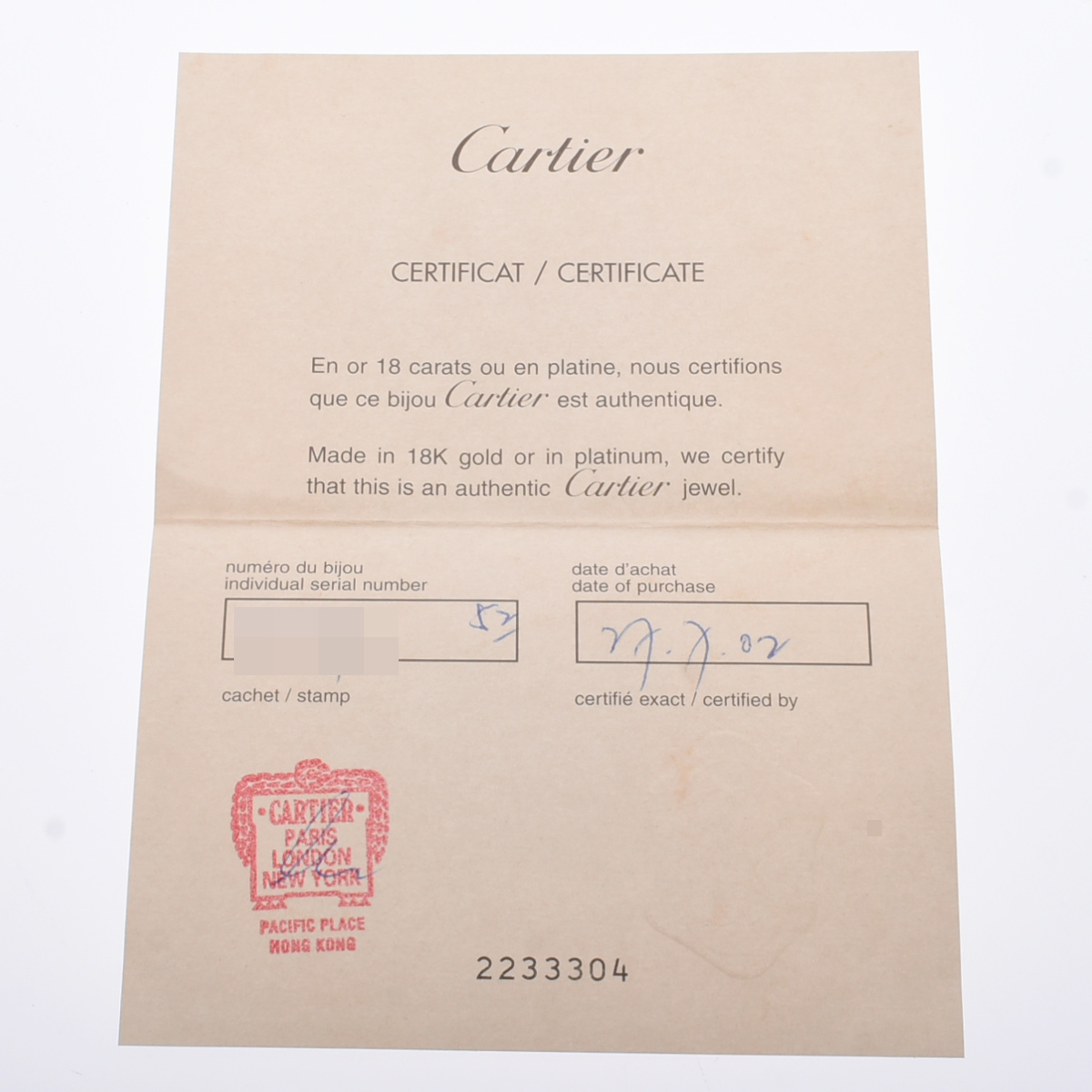 - メーカー保証書( 2002年7月海外購入) / 内箱