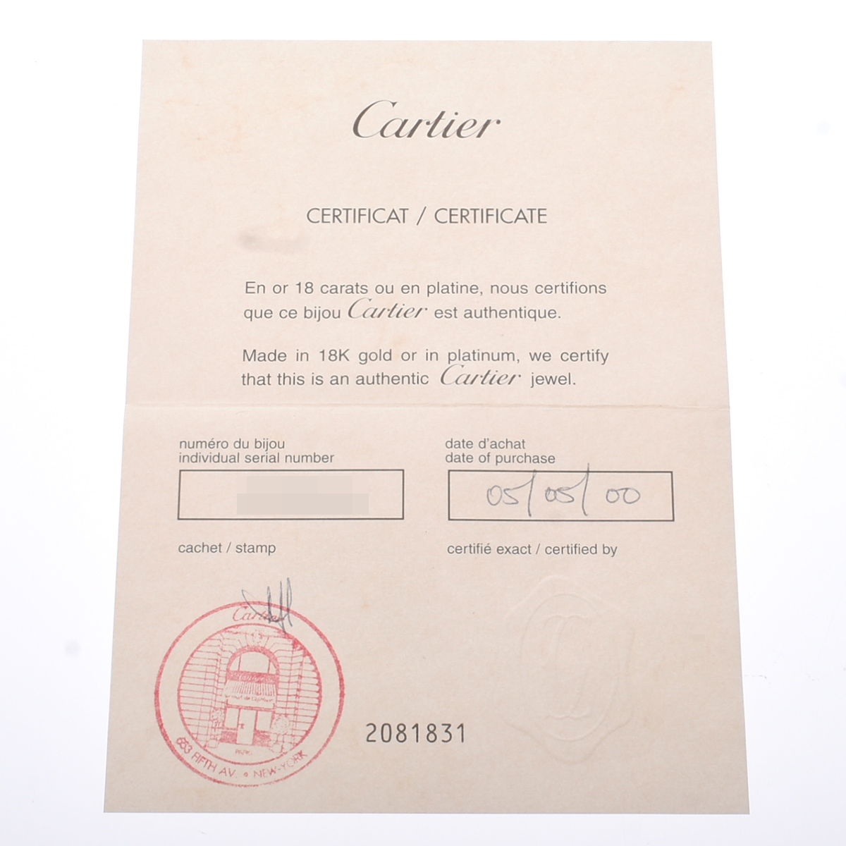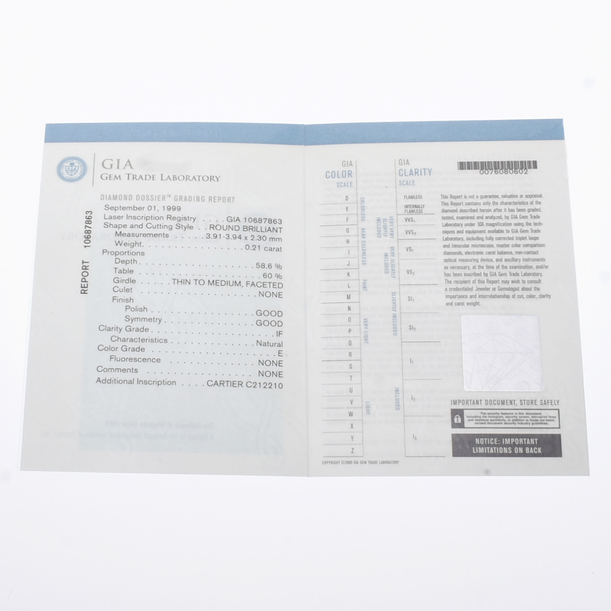 - メーカー保証書( 2000年5月海外購入) / 内箱(ダメージ) / GIA鑑定書